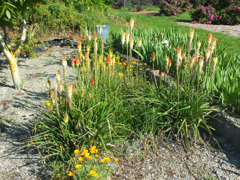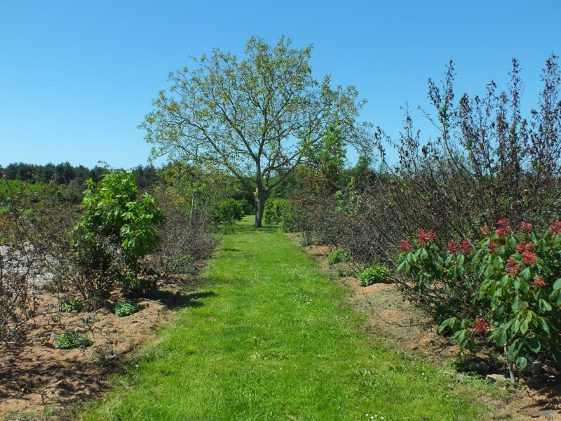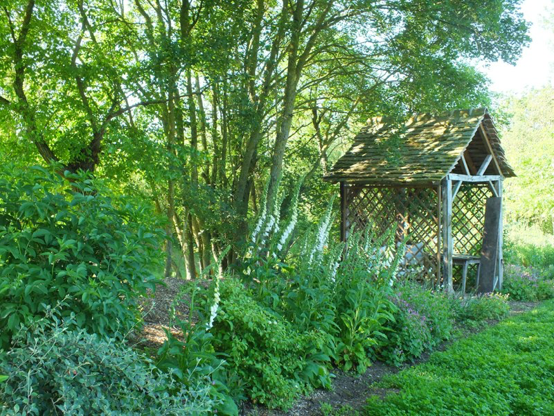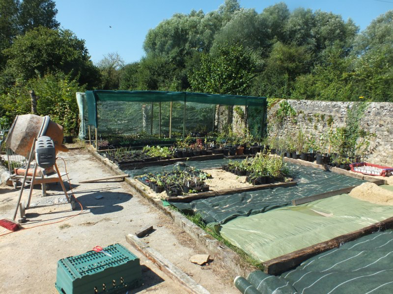 The weather continued to be mild and with a reasonable amount of rain at the beginning of the month but then the heat wave hit us, and the garden, quite suddenly with temperatures of 30+C for days on end. Nevertheless we managed to get a lot of work done. Edward built a stone staircase linking the two levels of the garden, and using much of the remaining hardcore and rubbish we inherited. We created a new series of shaded nursery beds, and have also begun a extension of the woodland