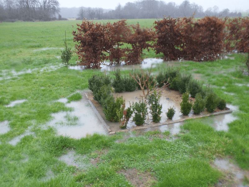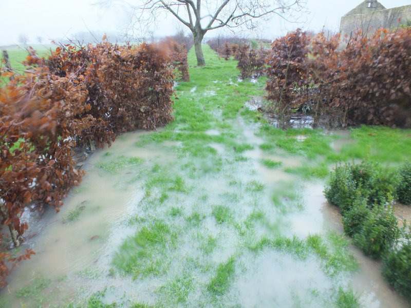 It was as wet in France as it was in the UK but luckily for us not at exactly the same time. So we escaped London’s rain and spent a week gardening in the relative warmth and sunshine. The lake was overflowing, parts of the garden were a quagmire but it hardly rained while we were there, so we managed to get a lot of work done. More fruit trees and hedging, hundreds more bulbs and plants went in and we began the reorganization of the kitchen garden and replanting the entrance area. And we managed lunch outside on the terrace on Christmas Day.