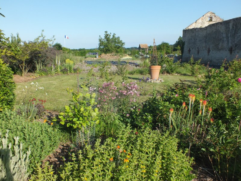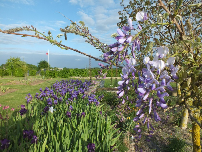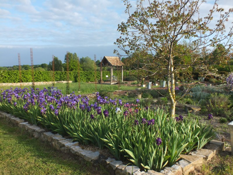 The polytunnel was completed, and our friendly local roofer built us a pergola from the salvaged roof beams of the old barn which attracted lots of interest from passers by. The garden is generally looking good, and actually rather grown-up, especially when we looked back at photos from previous years. The new bulb bed and the iris bed have been spectacular and the wisterias in pots have flowered for the first time. All in all its been a good month in the garden!