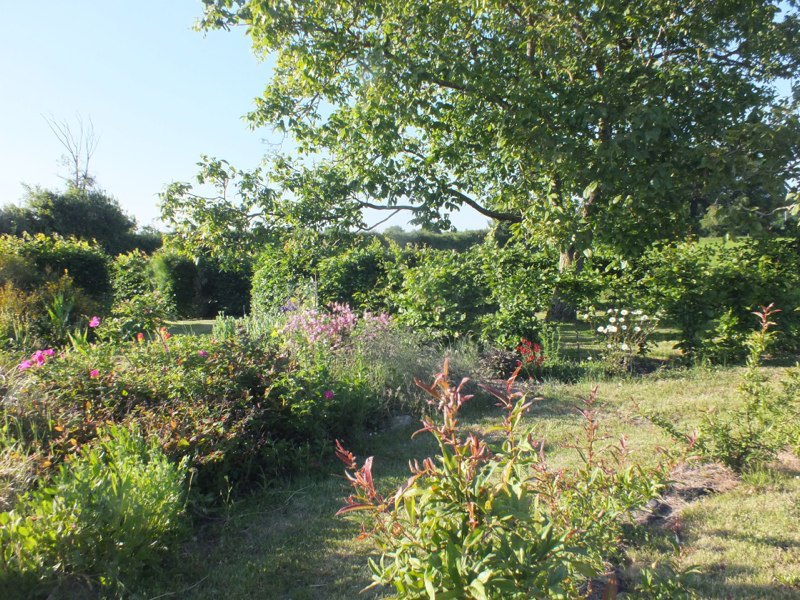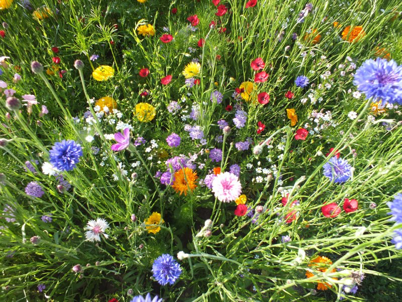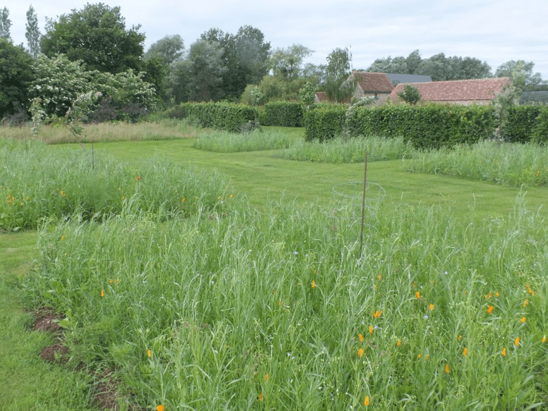 The cold wet spring had some advantages. The garden hasn’t needed watering and is greener and lusher than usual, and the flowers are lasting longer, even though they are later to appear. As a result the whole place is looking good. And our experimental meadow “squares” in the top field were ready to come into flower properly…