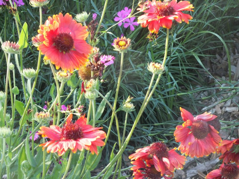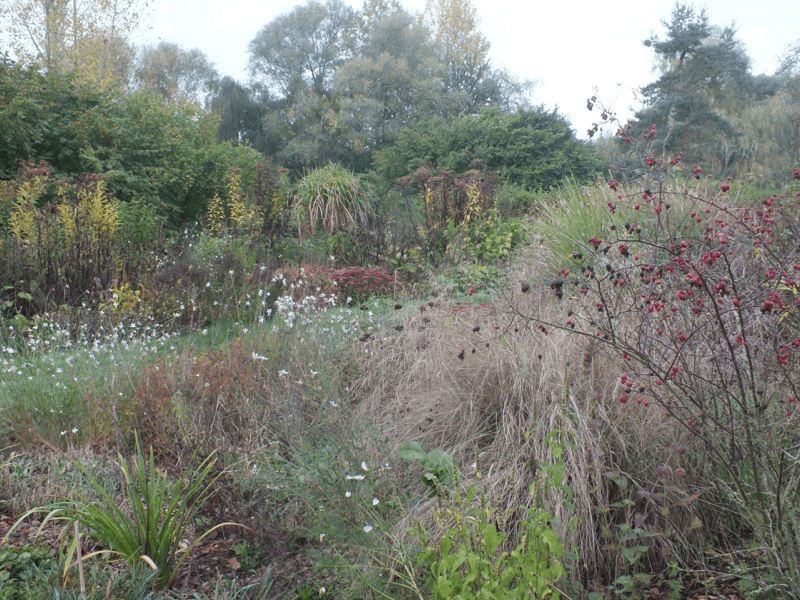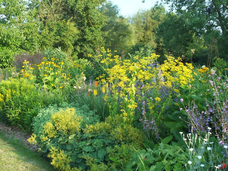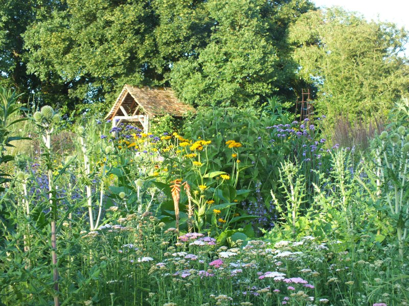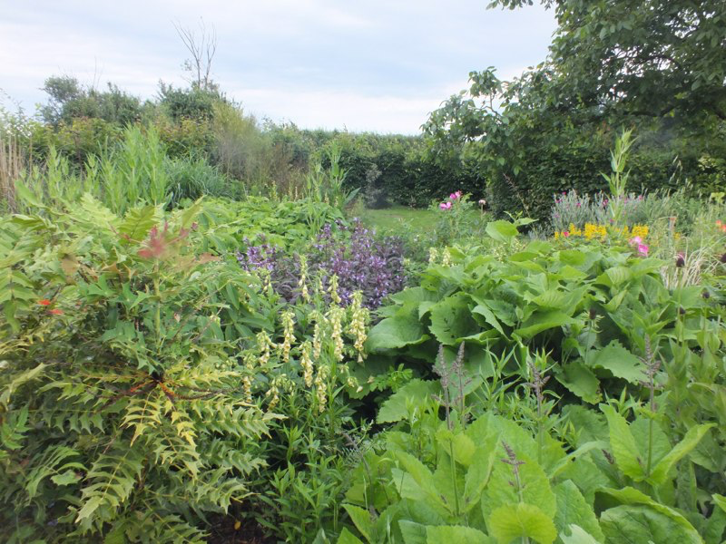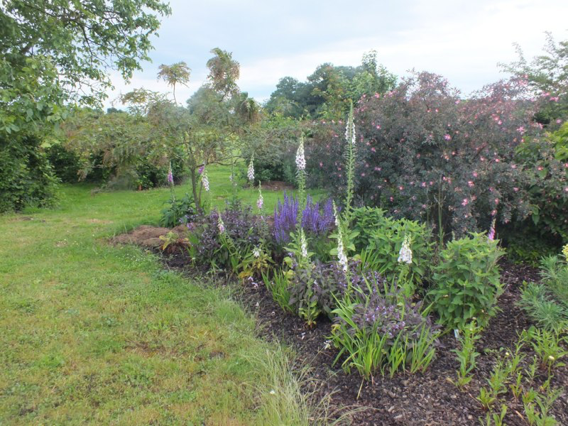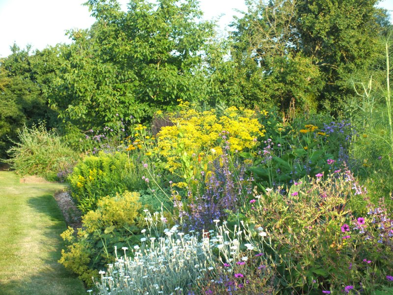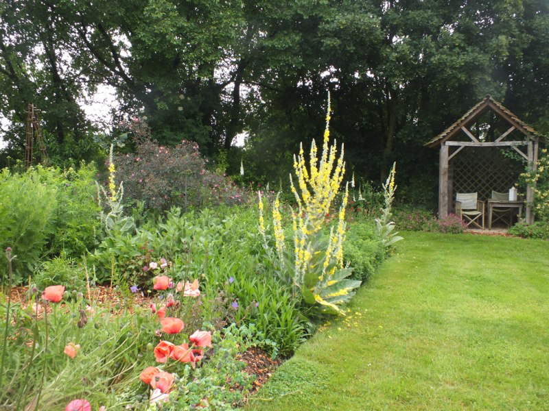 We got back from a few days working in London in the middle of a huge storm that devastated parts of the garden, flattening plants, breaking branches off trees and overturning large pots. We then had 2 or 3 weeks of baking hot weather, including a week of 30C+, which scorched the foliage of trees and even relatively tough plants, and shortened the flowering times of many others. Since then it has continued warm and very dry. The garden seems to have survived the worst though, and is still looking passable, although a bit sad in places and we’ve even started to deadhead and cutback.