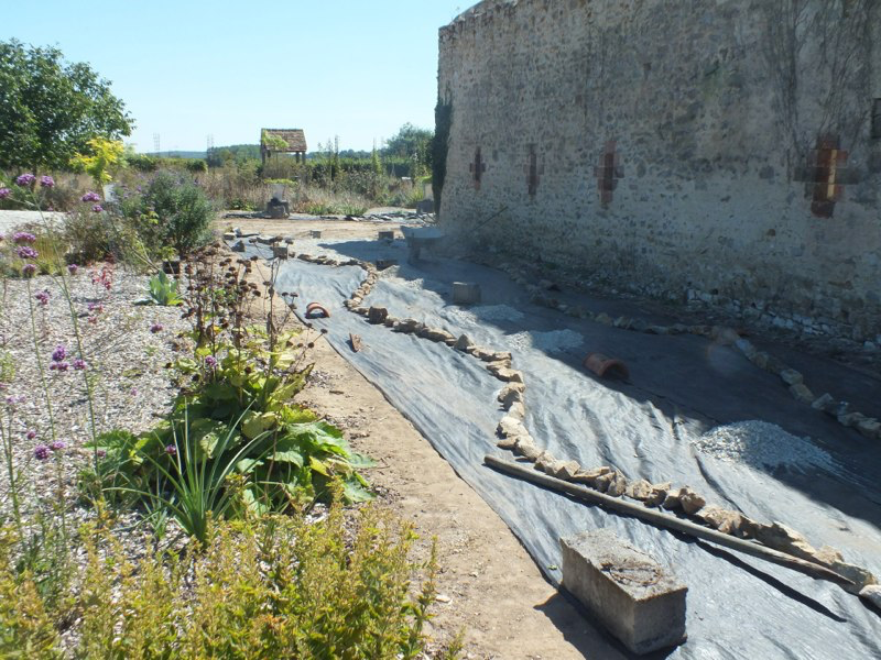 Edward has been very busy on the building front. We’ve moved the great heap of rubble and earth than stood next to gravel garden, with a bit of help from our friend Nick, and now Edward has built not only a second iris bed, but also a much larger new raised bed for alpines which also includes a pond. The rest of the stone has been put aside for next year’s projects. The ground where the heap was has now been levelled and got ready to be the extension to the gravel garden.