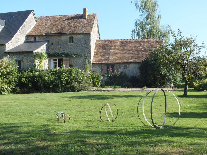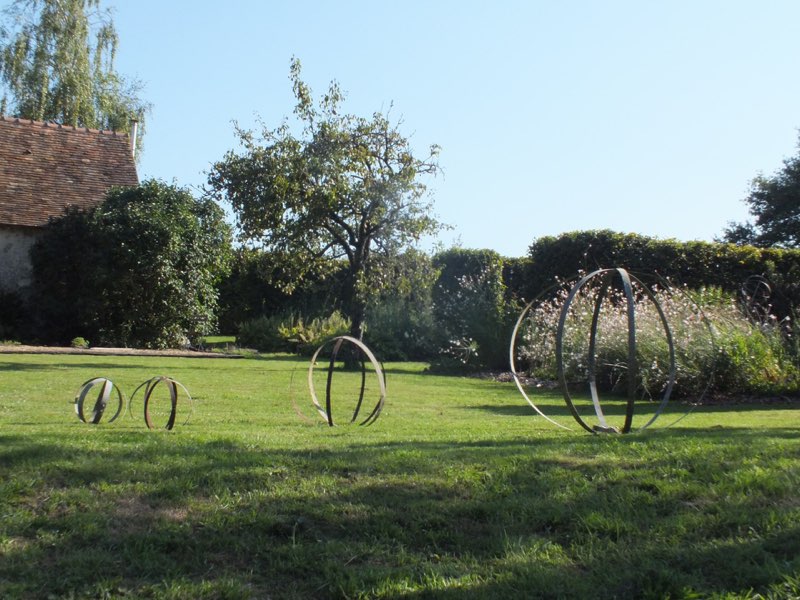 As the Summer came to an end Edward got a bit arty with found objects! Reusing old barrel rings for garden decoration.