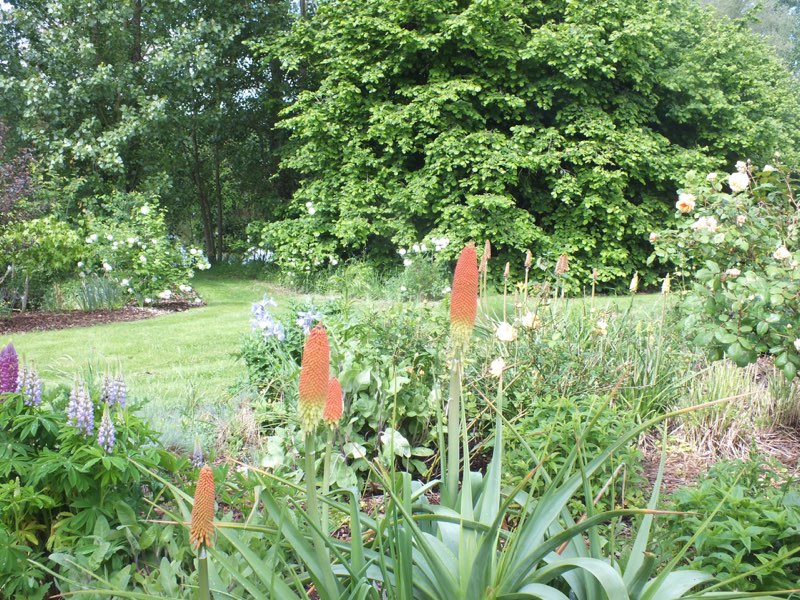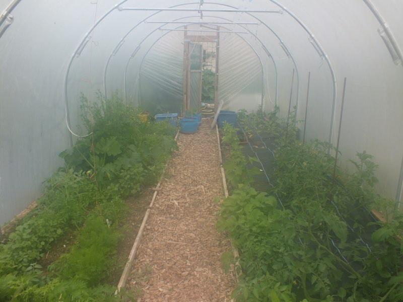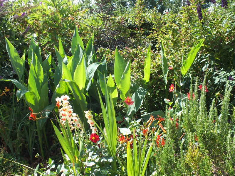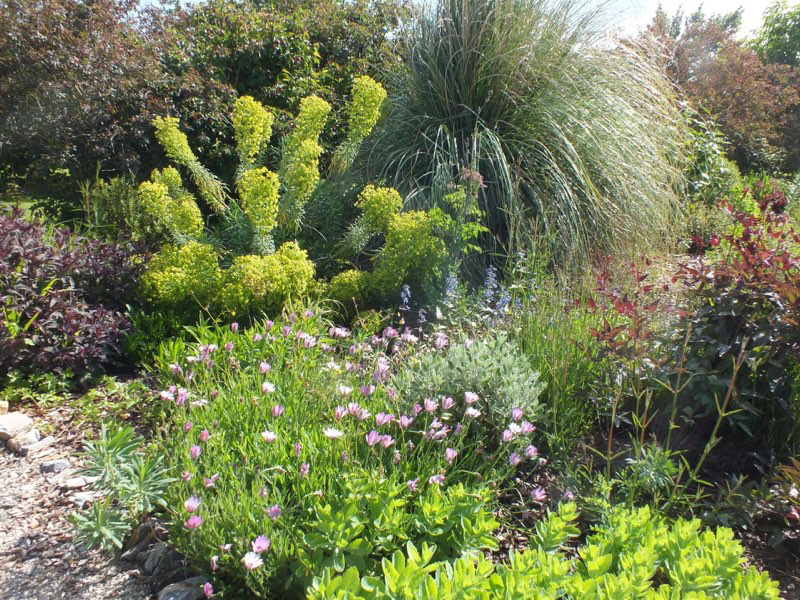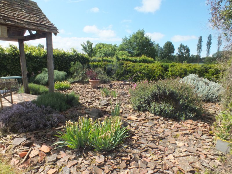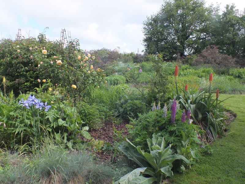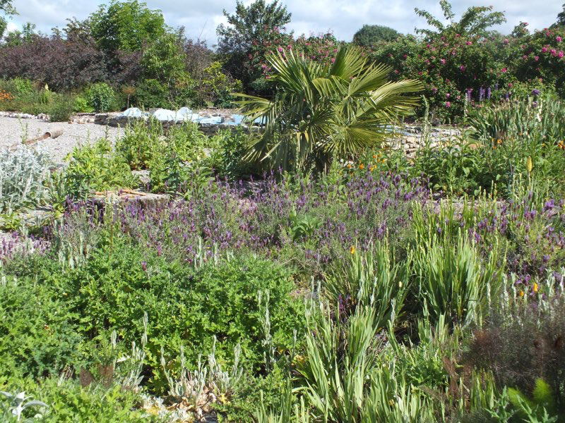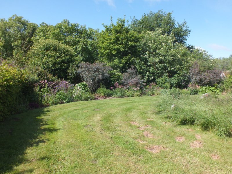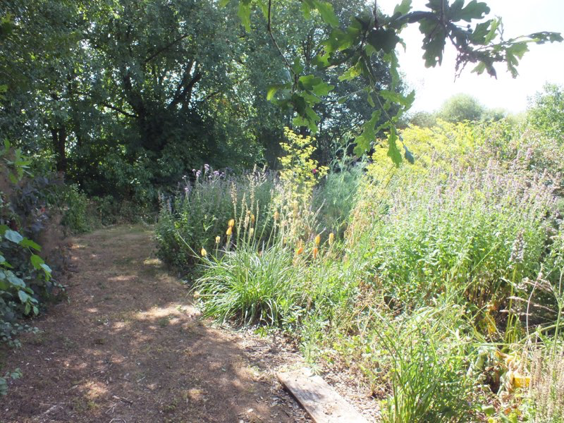July and the drought starts to impact but with clever planting and lots of mulching the garden still seems to cope.