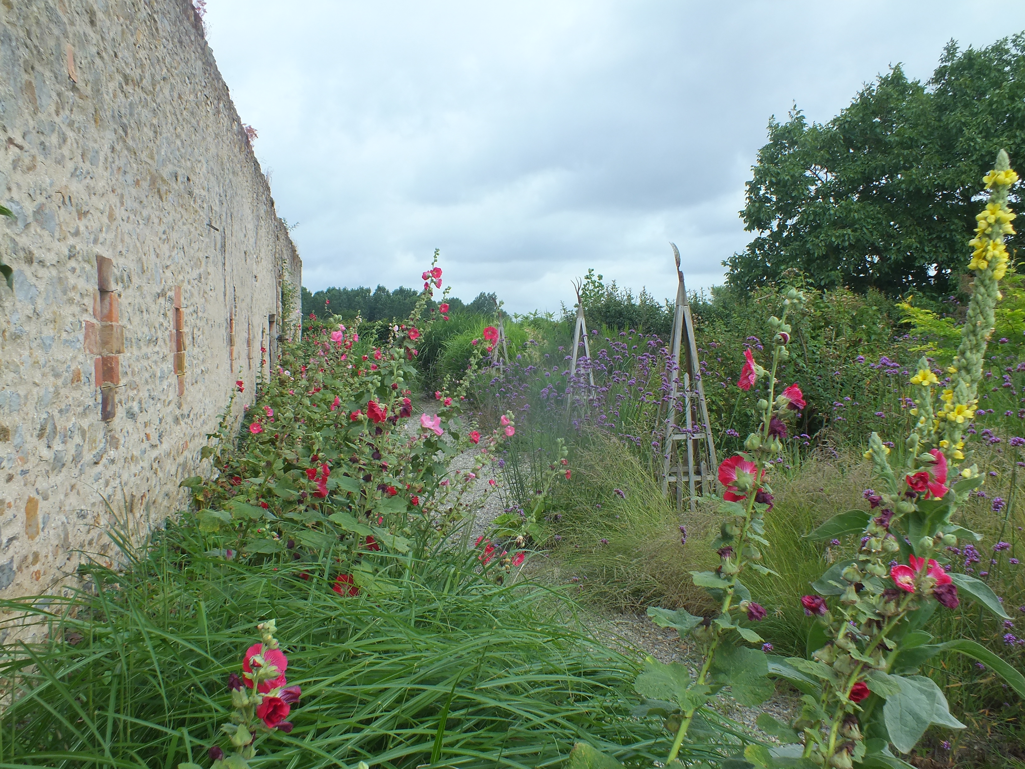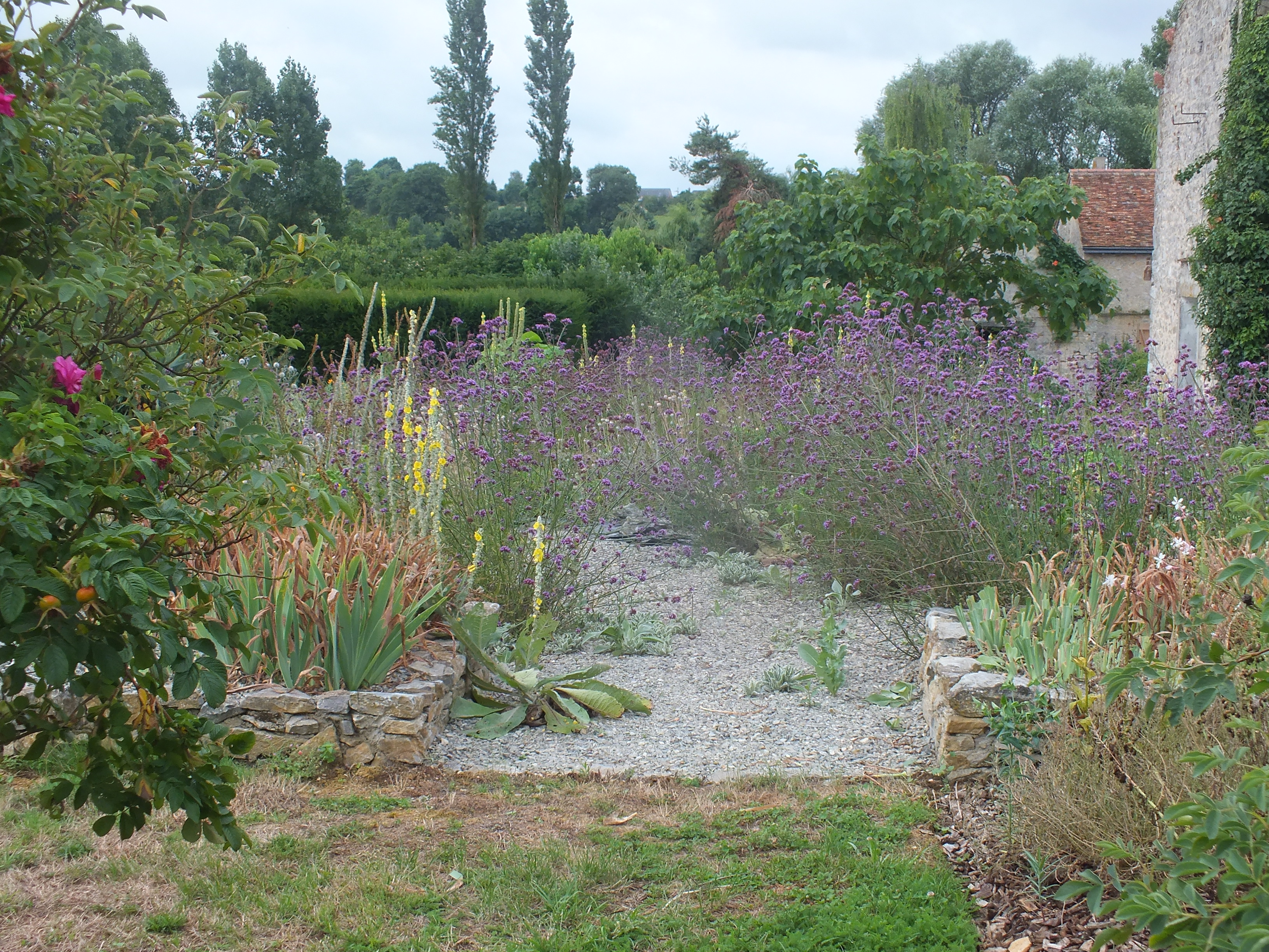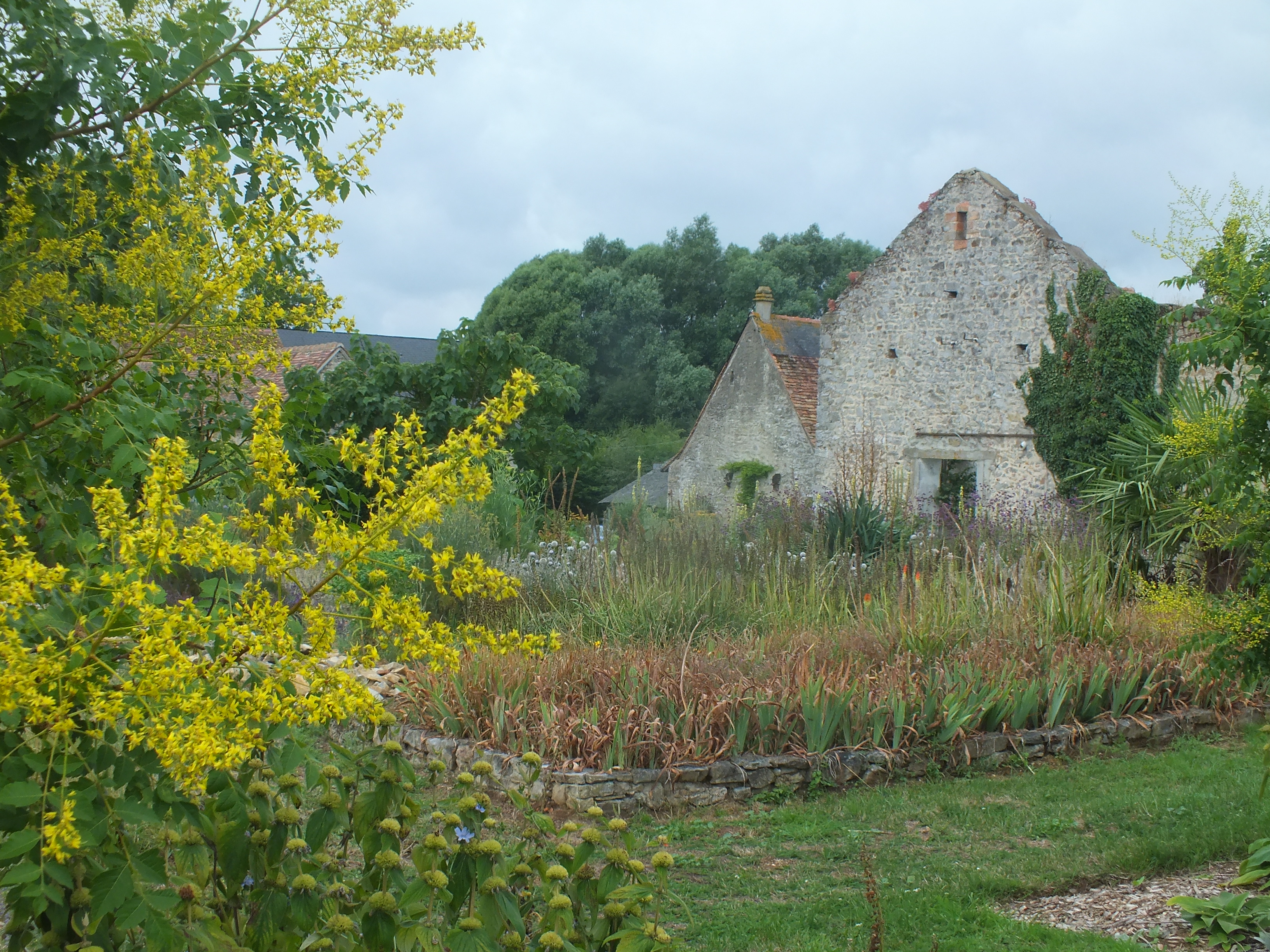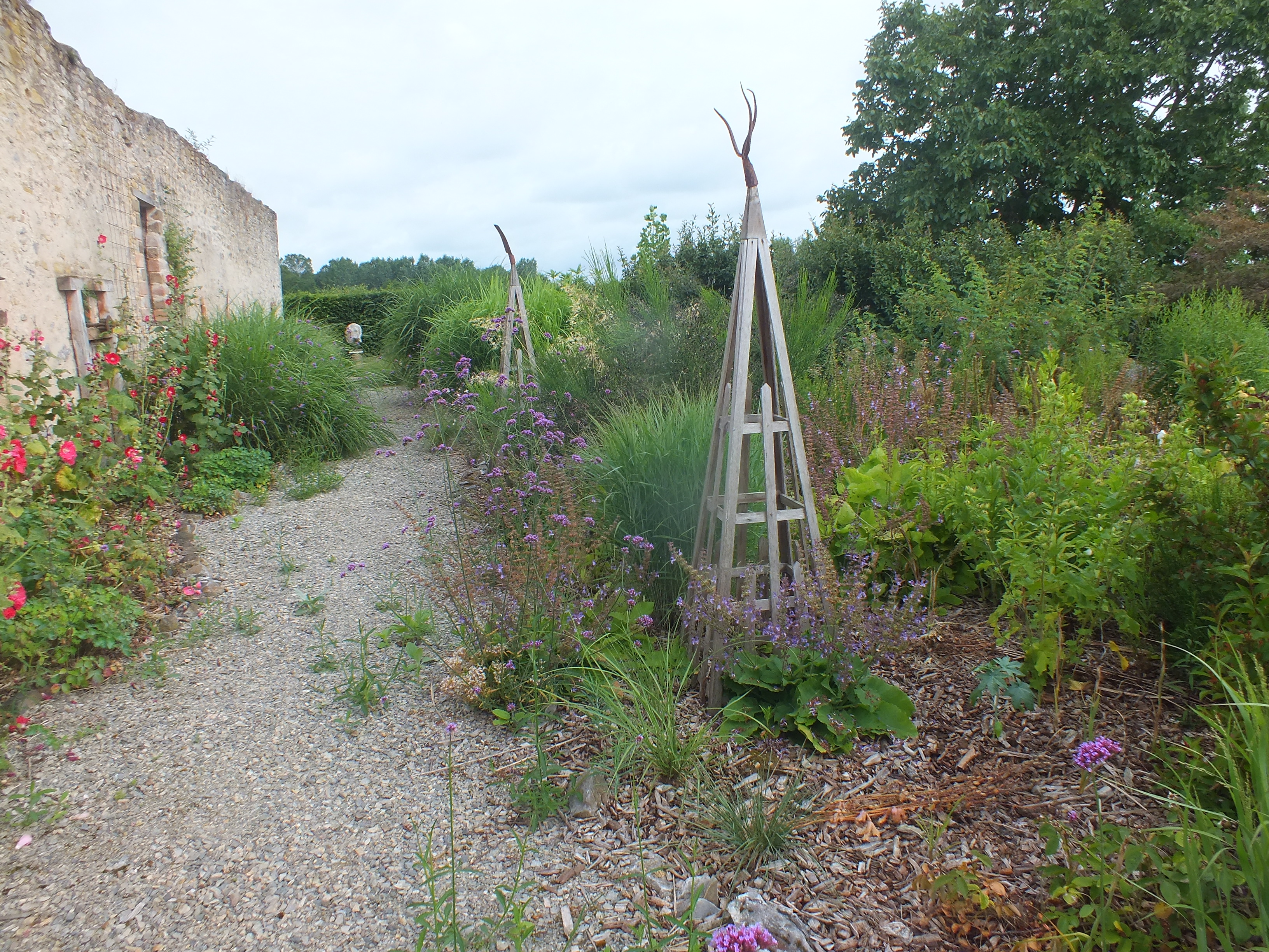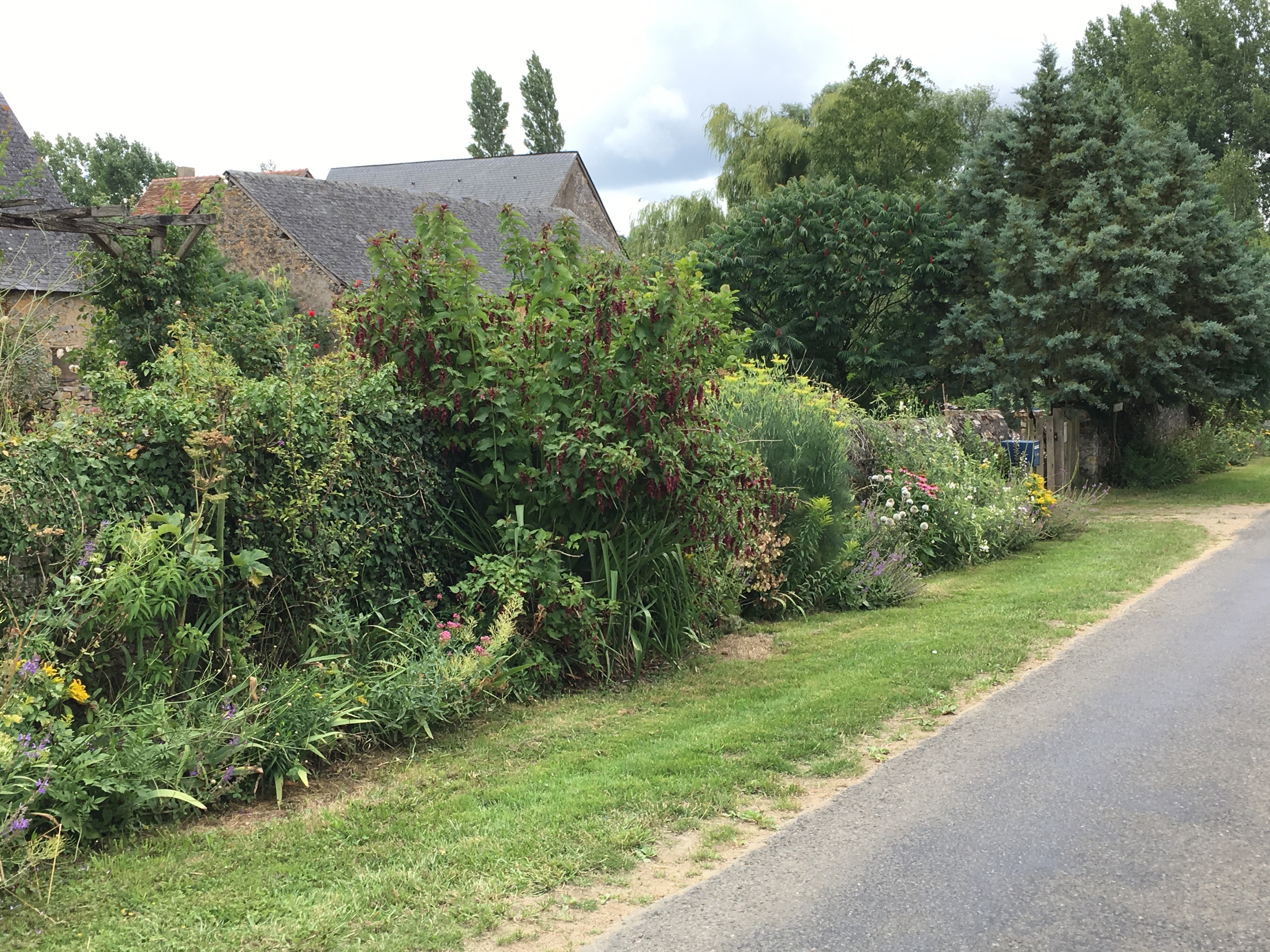 Interest in the garden continues to spread and with the loving help of our neighbours Michel and Regine Cottereau we were visited by the committee for verifying the Village Fleuri in the Pays de la Loire. Much interest and disbelief that we had done this all by ourselves without a team of gardeners and amazement at some of the planting techniques we use to encourage self-sowing plants to find their own homes! This proved to be very demanding for my French! Needless to say…. David was again in London for this unexpected visit!