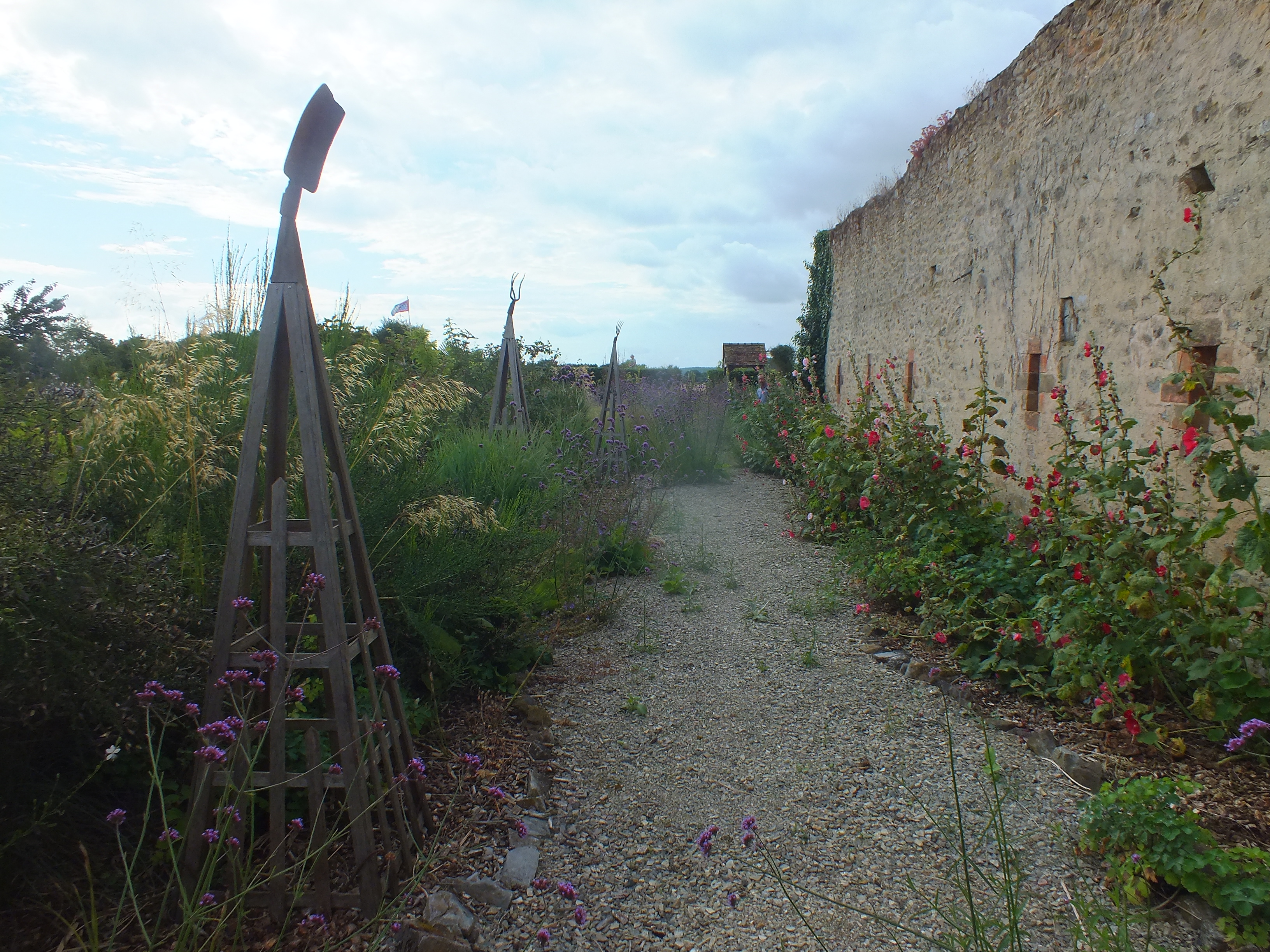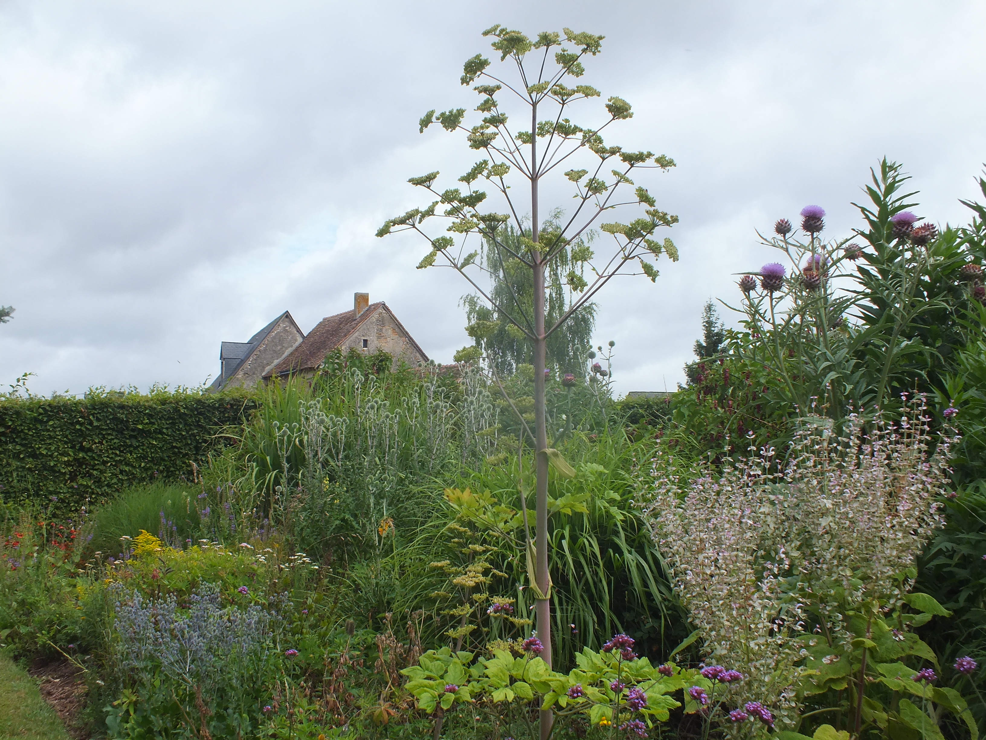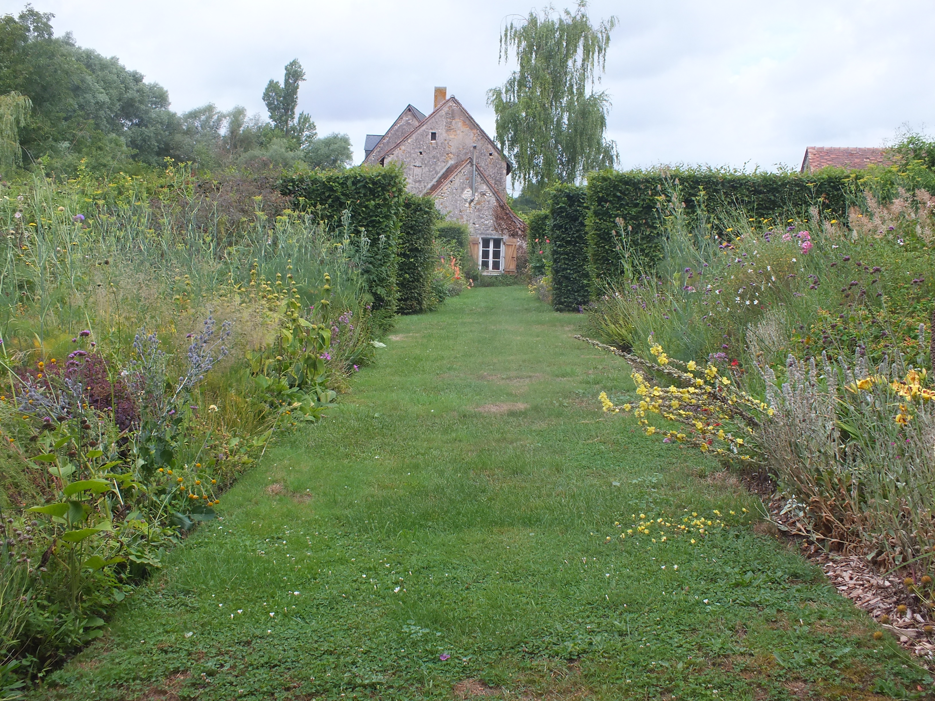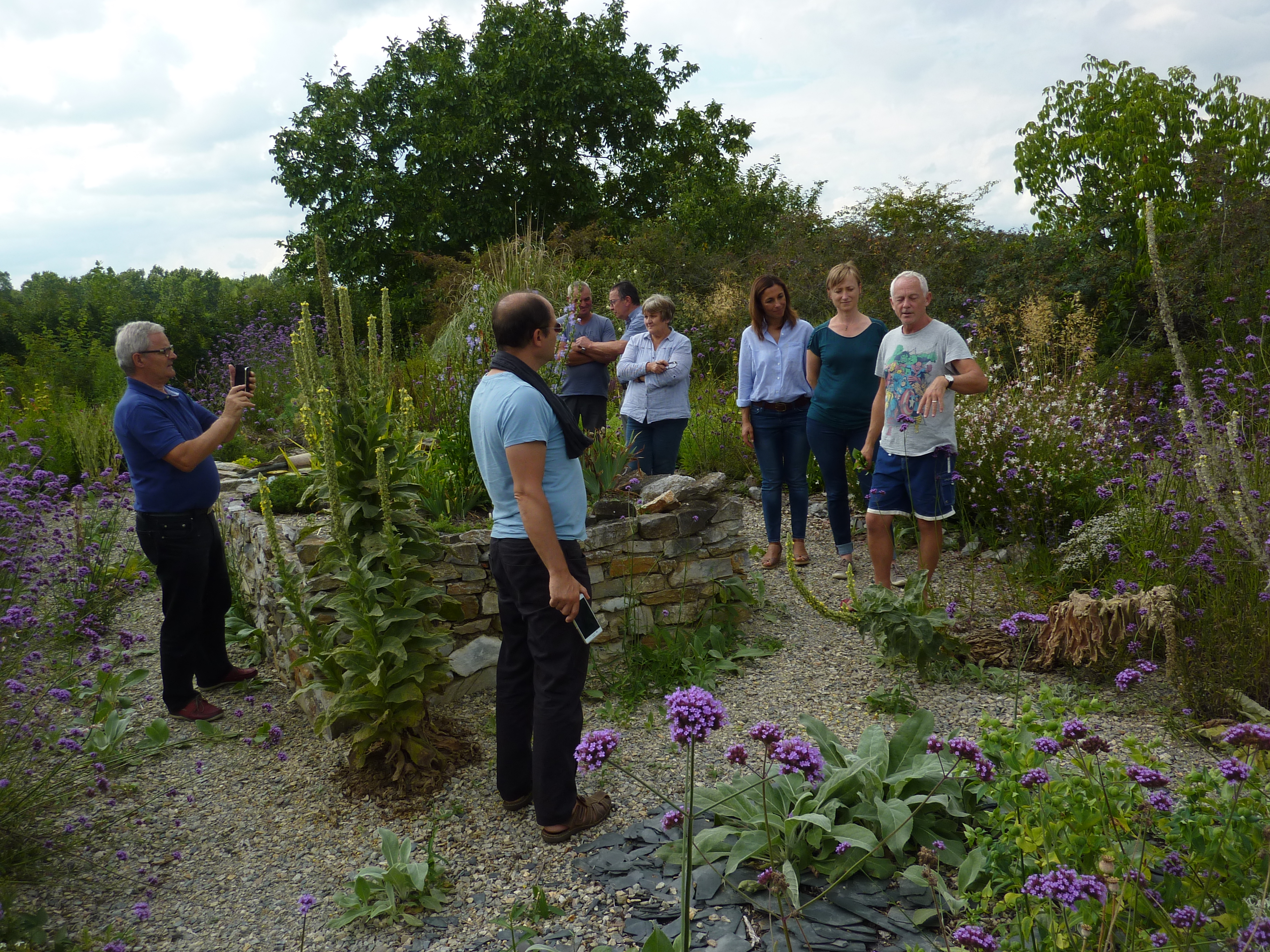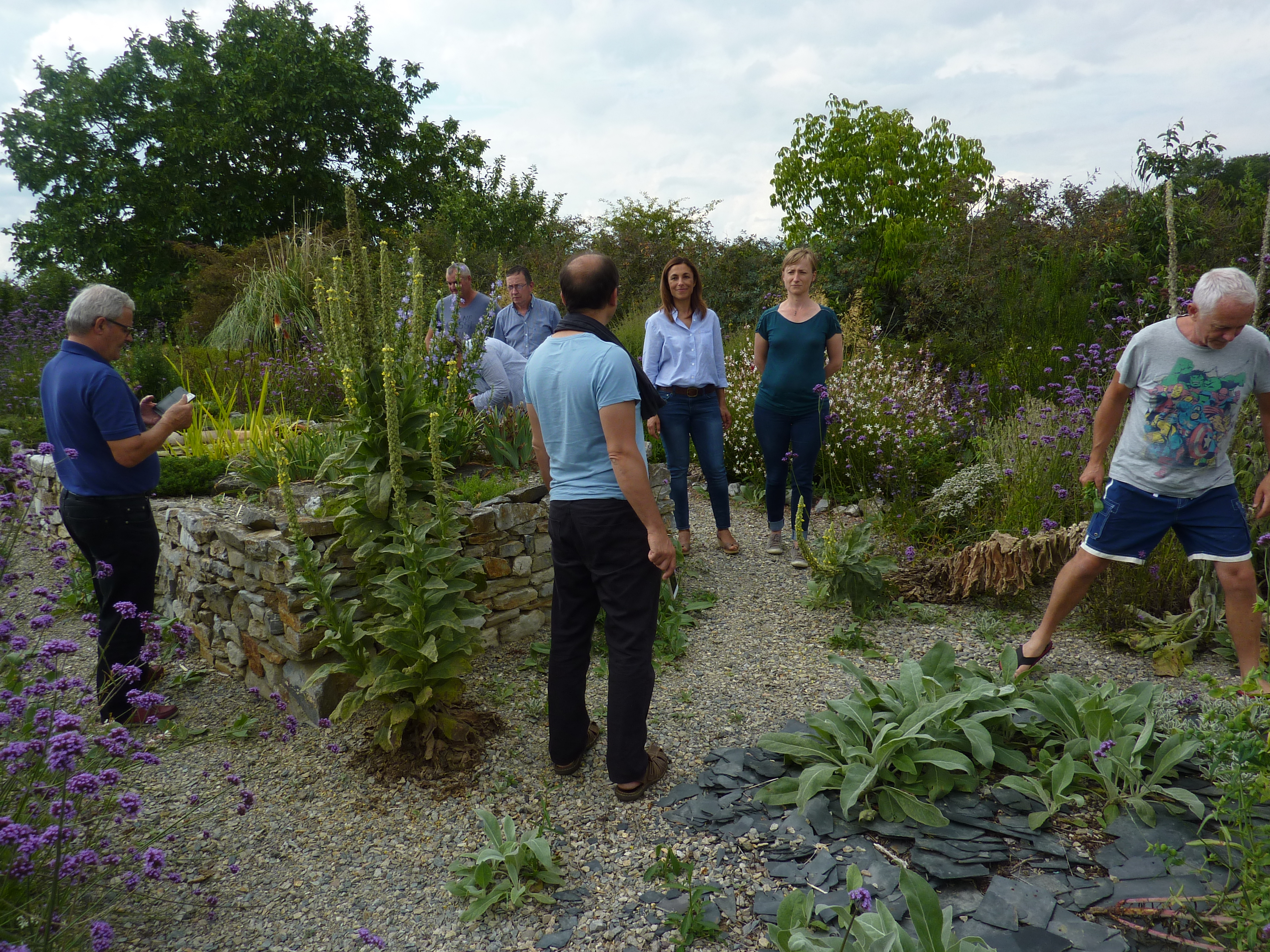 Interest in the garden continues to spread and with the loving help of our neighbours Michel and Regine Cottereau we were visited by the committee for verifying the Village Fleuri in the Pays de la Loire. Much interest and disbelief that we had done this all by ourselves without a team of gardeners and amazement at some of the planting techniques we use to encourage self-sowing plants to find their own homes! This proved to be very demanding for my French! Needless to say…. David was again in London for this unexpected visit!