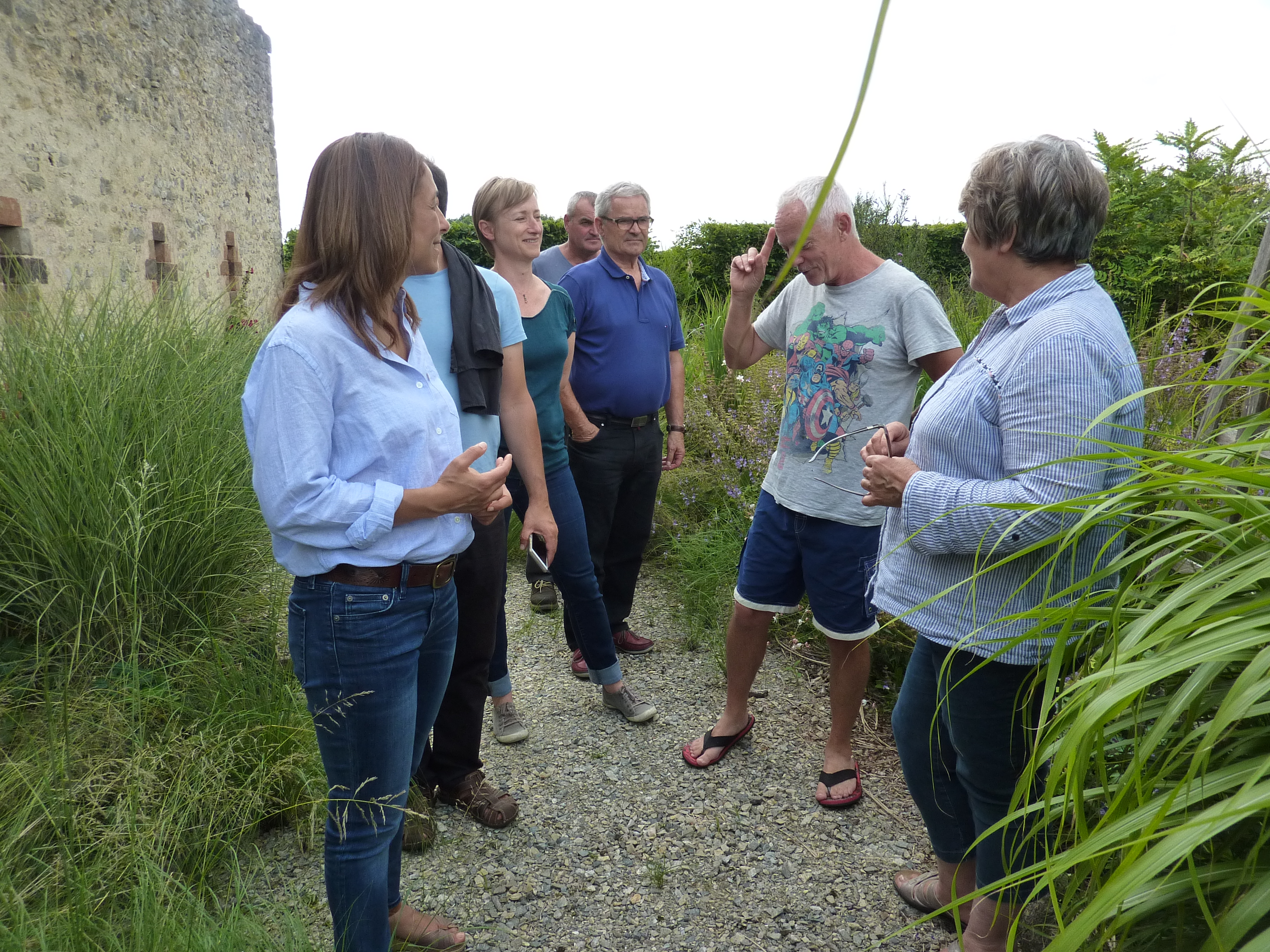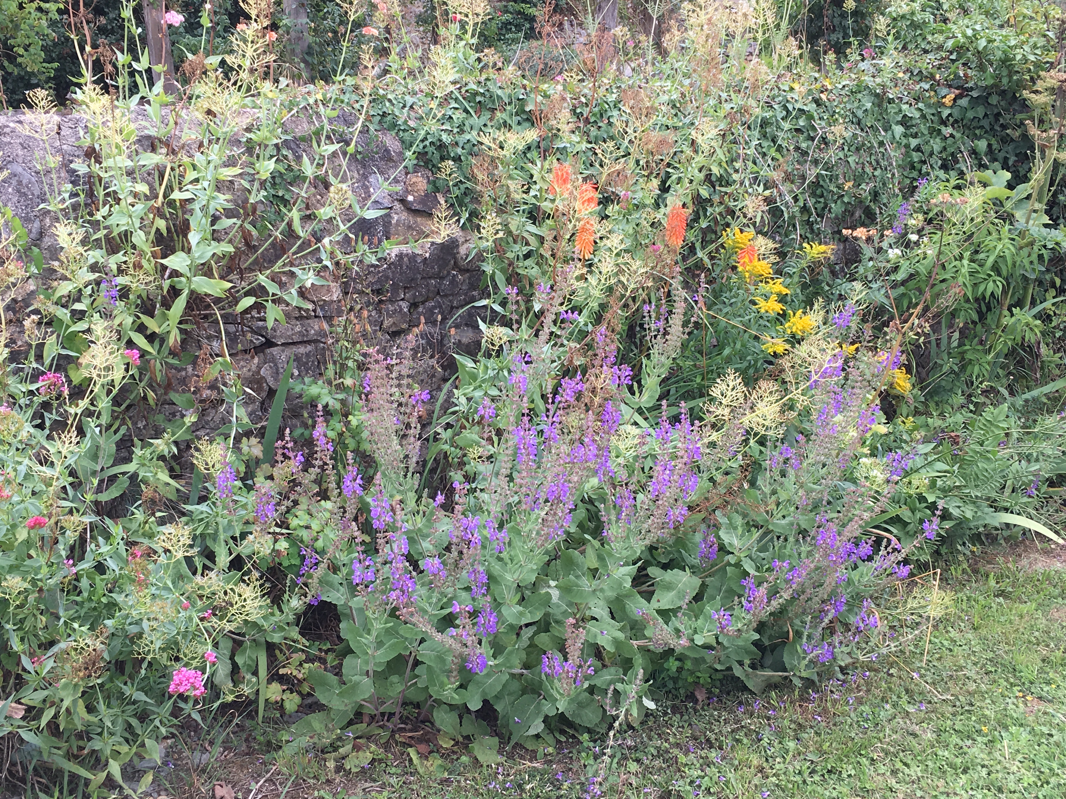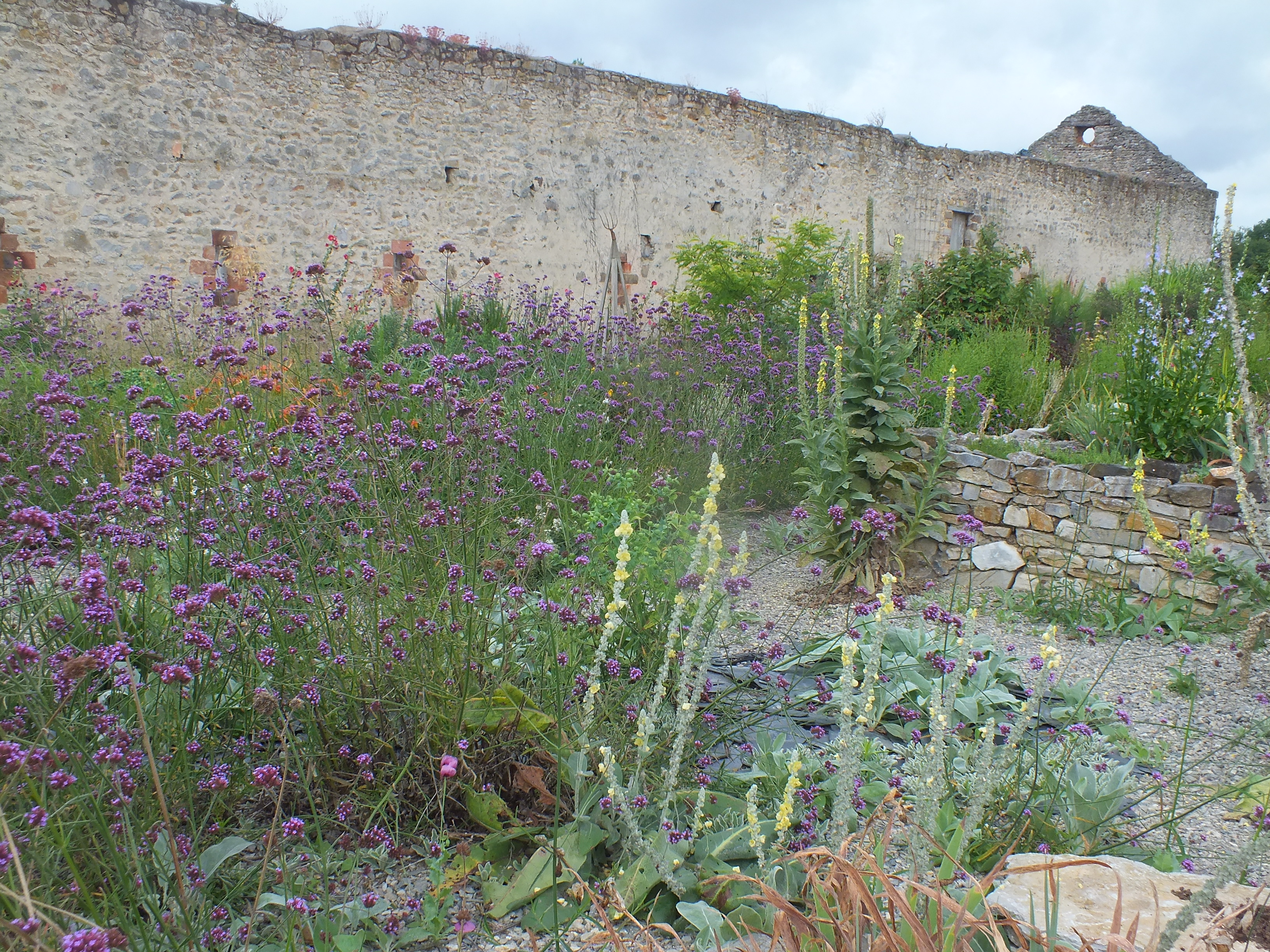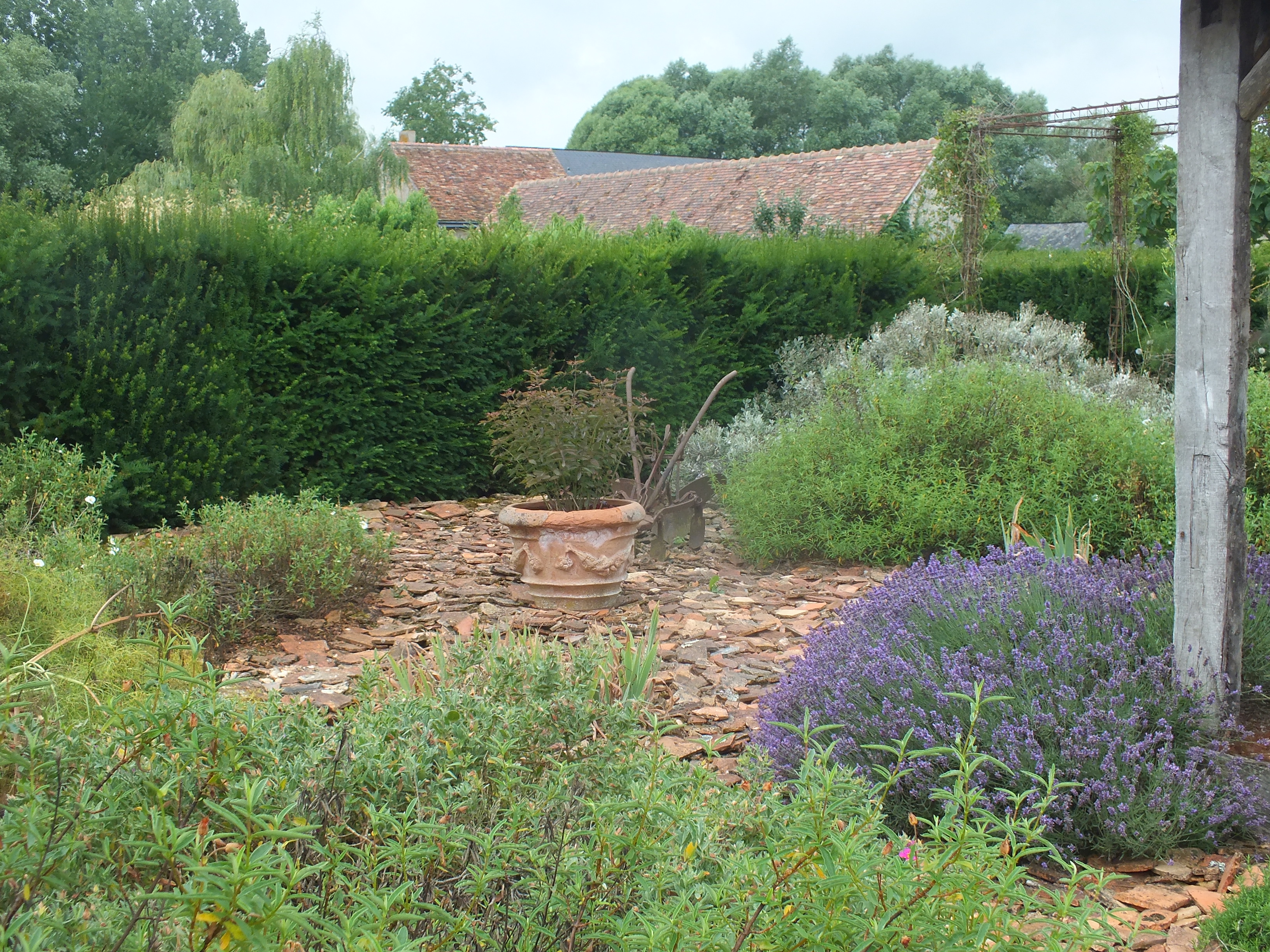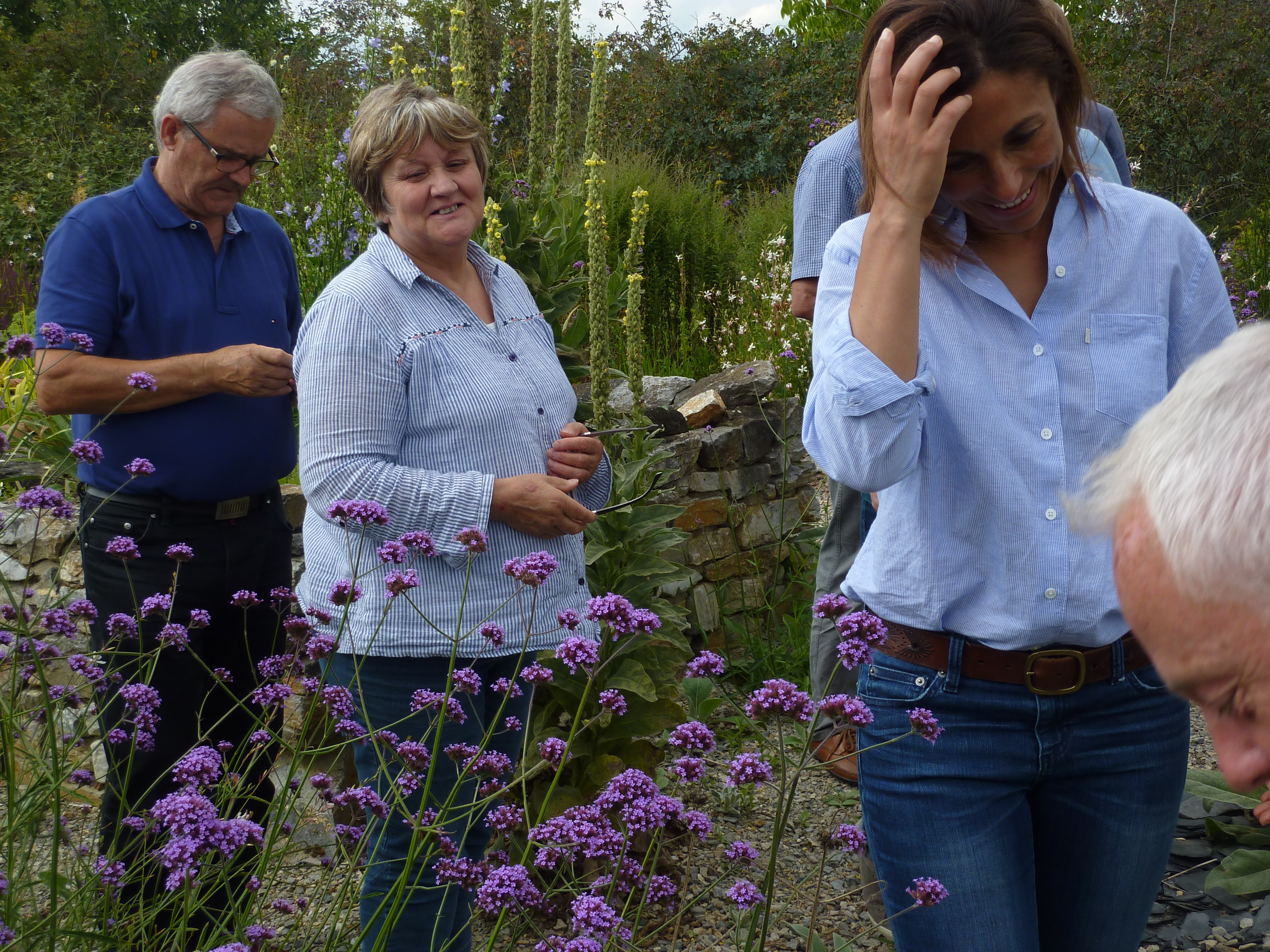Interest in the garden continues to spread and with the loving help of our neighbours Michel and Regine Cottereau we were visited by the committee for verifying the Village Fleuri in the Pays de la Loire. Much interest and disbelief that we had done this all by ourselves without a team of gardeners and amazement at some of the planting techniques we use to encourage self-sowing plants to find their own homes! This proved to be very demanding for my French! Needless to say…. David was again in London for this unexpected visit!