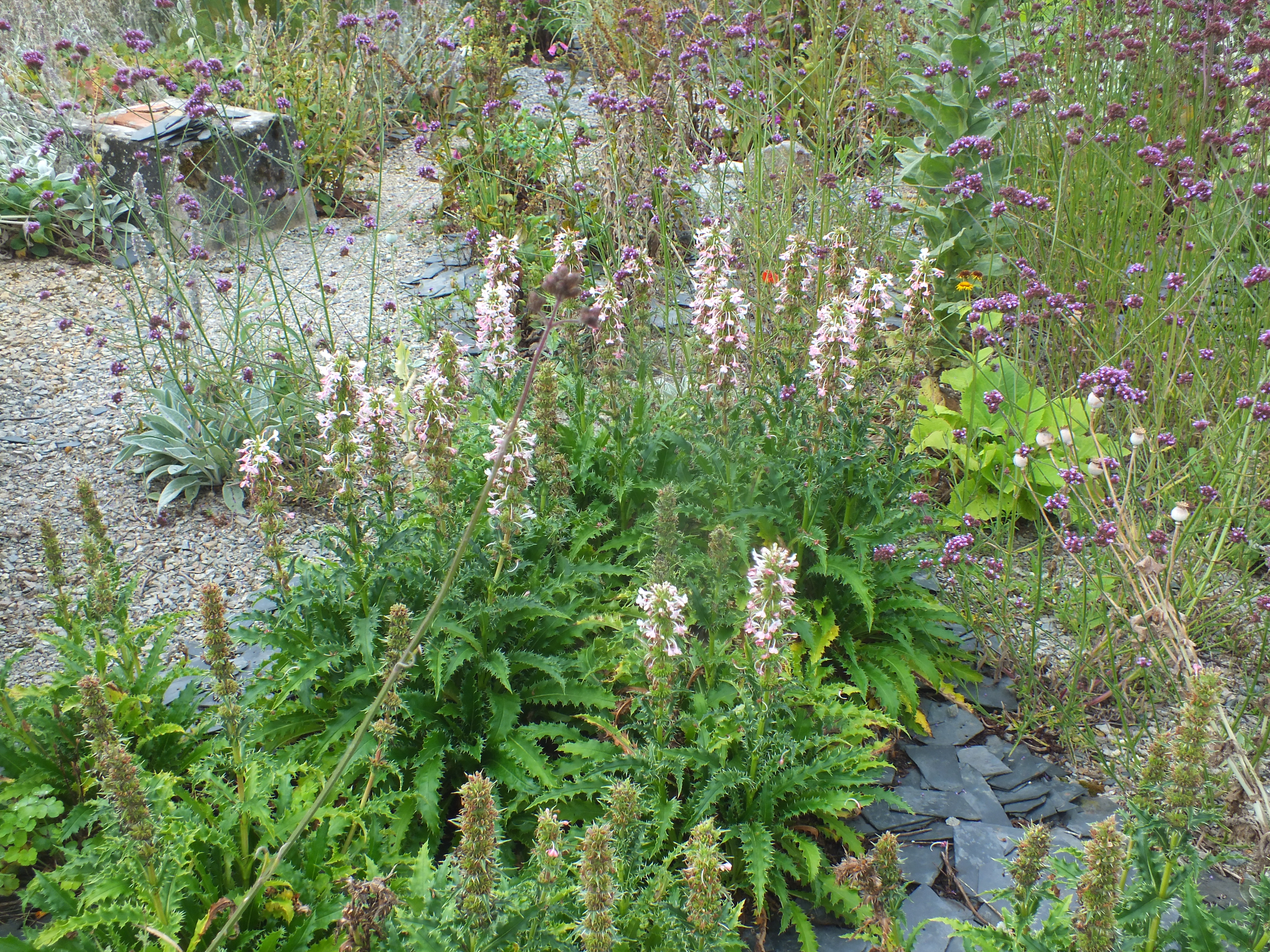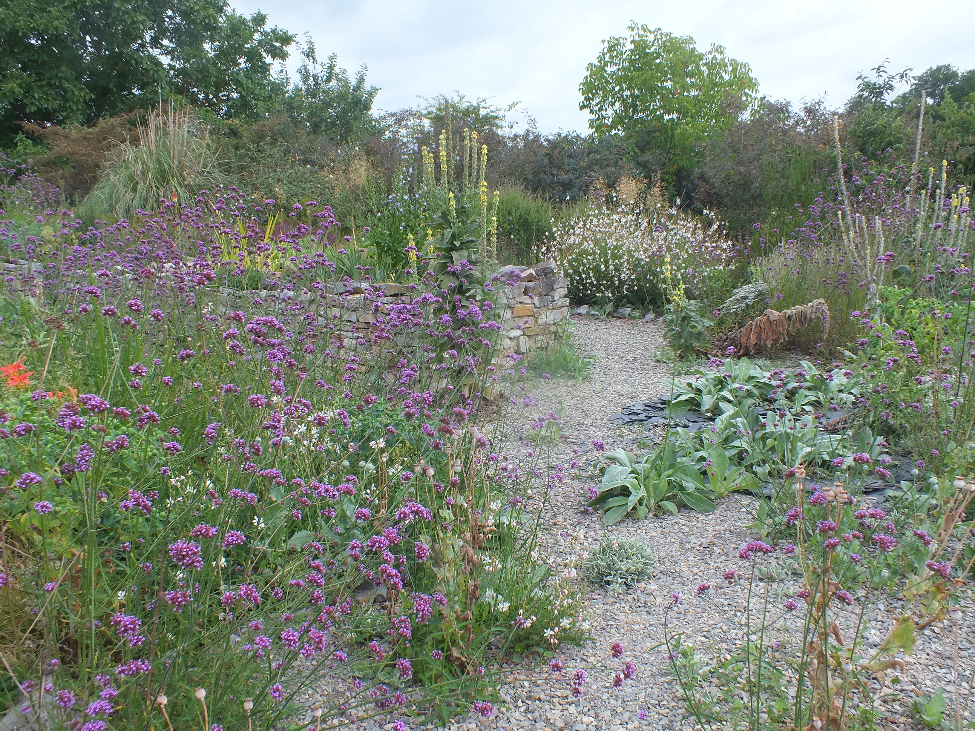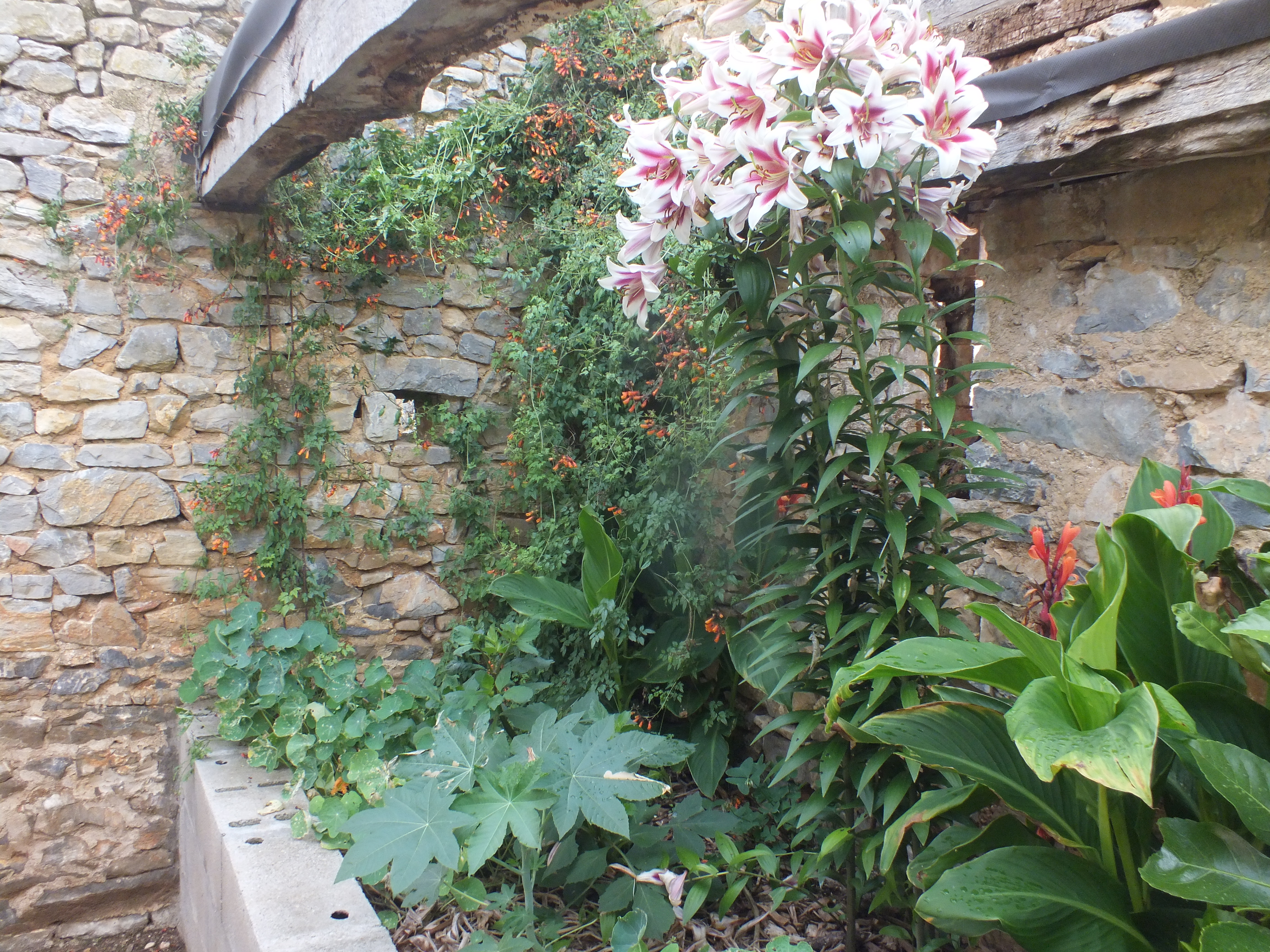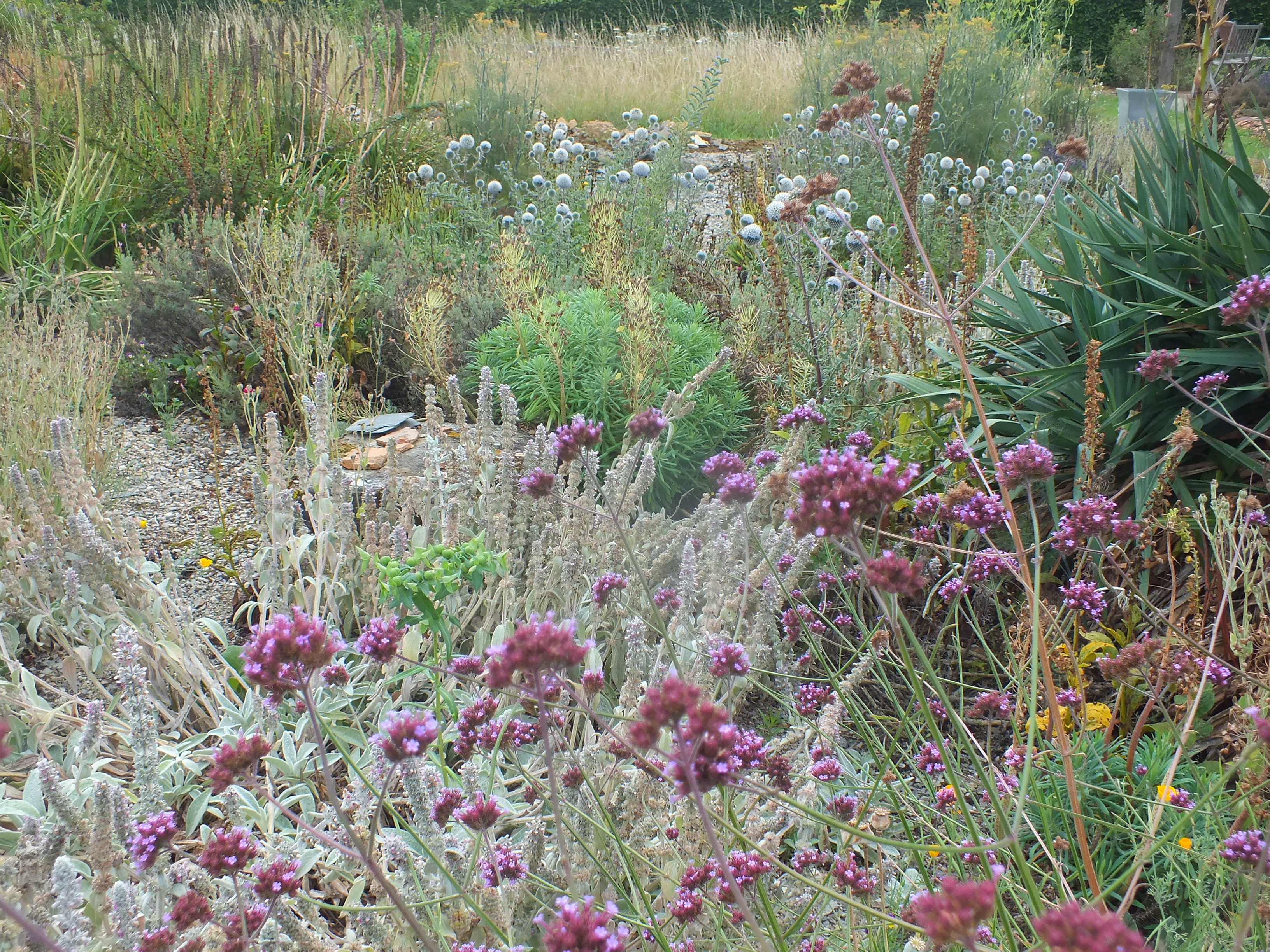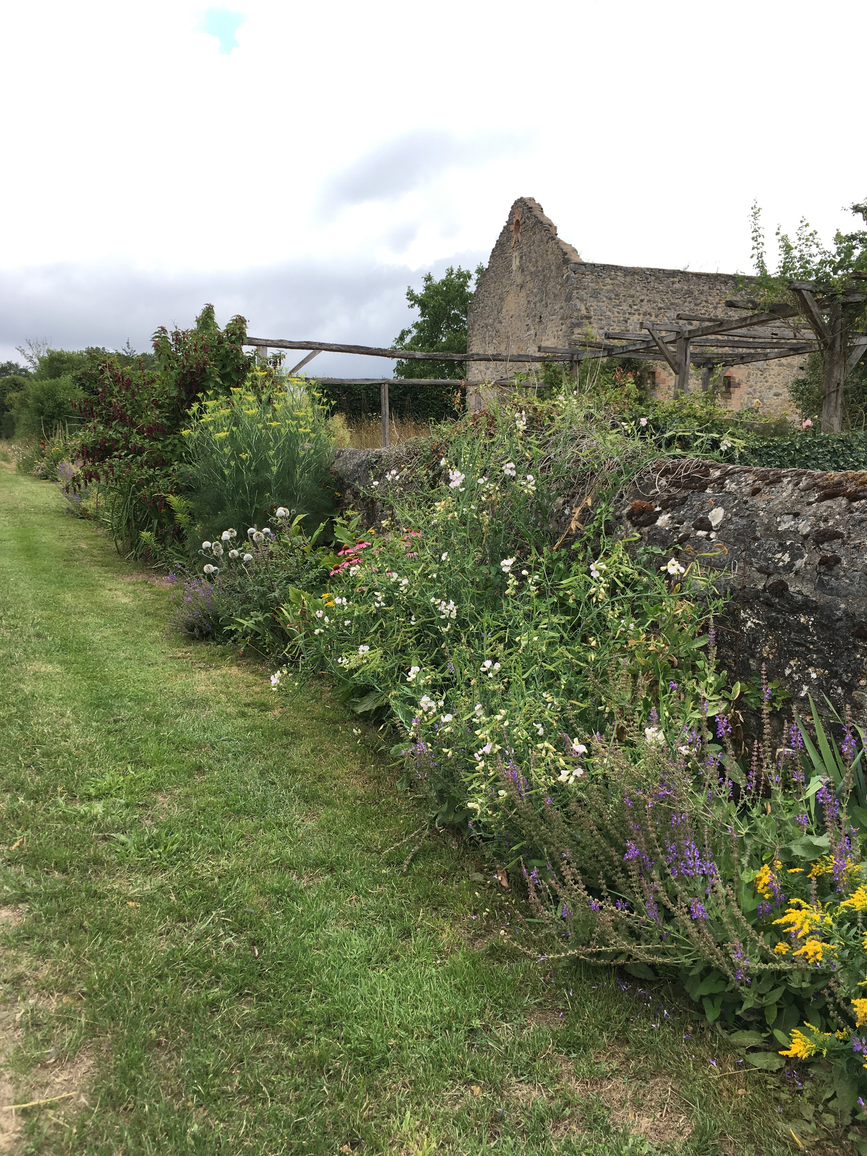Interest in the garden continues to spread and with the loving help of our neighbours Michel and Regine Cottereau we were visited by the committee for verifying the Village Fleuri in the Pays de la Loire. Much interest and disbelief that we had done this all by ourselves without a team of gardeners and amazement at some of the planting techniques we use to encourage self-sowing plants to find their own homes! This proved to be very demanding for my French! Needless to say…. David was again in London for this unexpected visit!