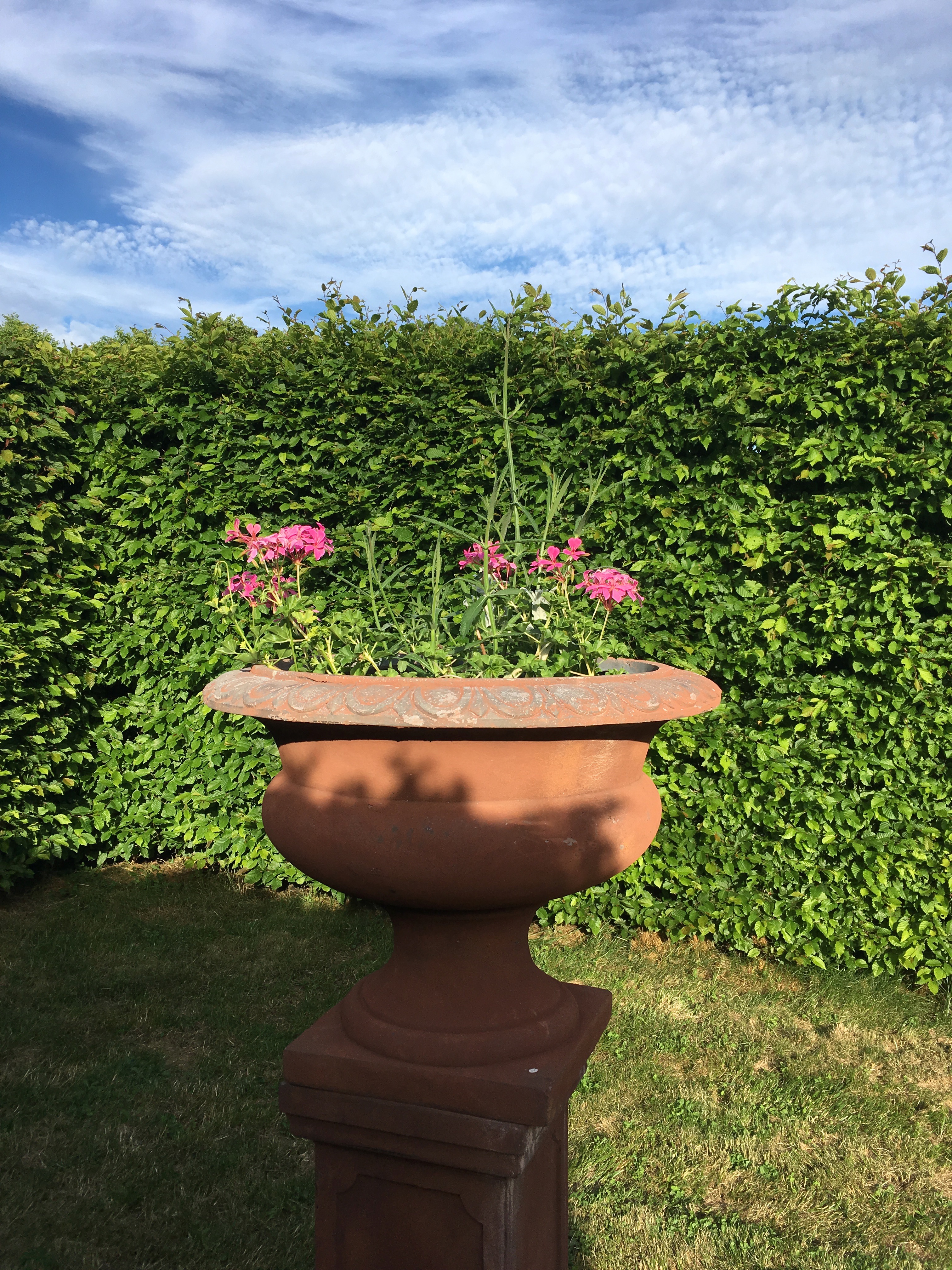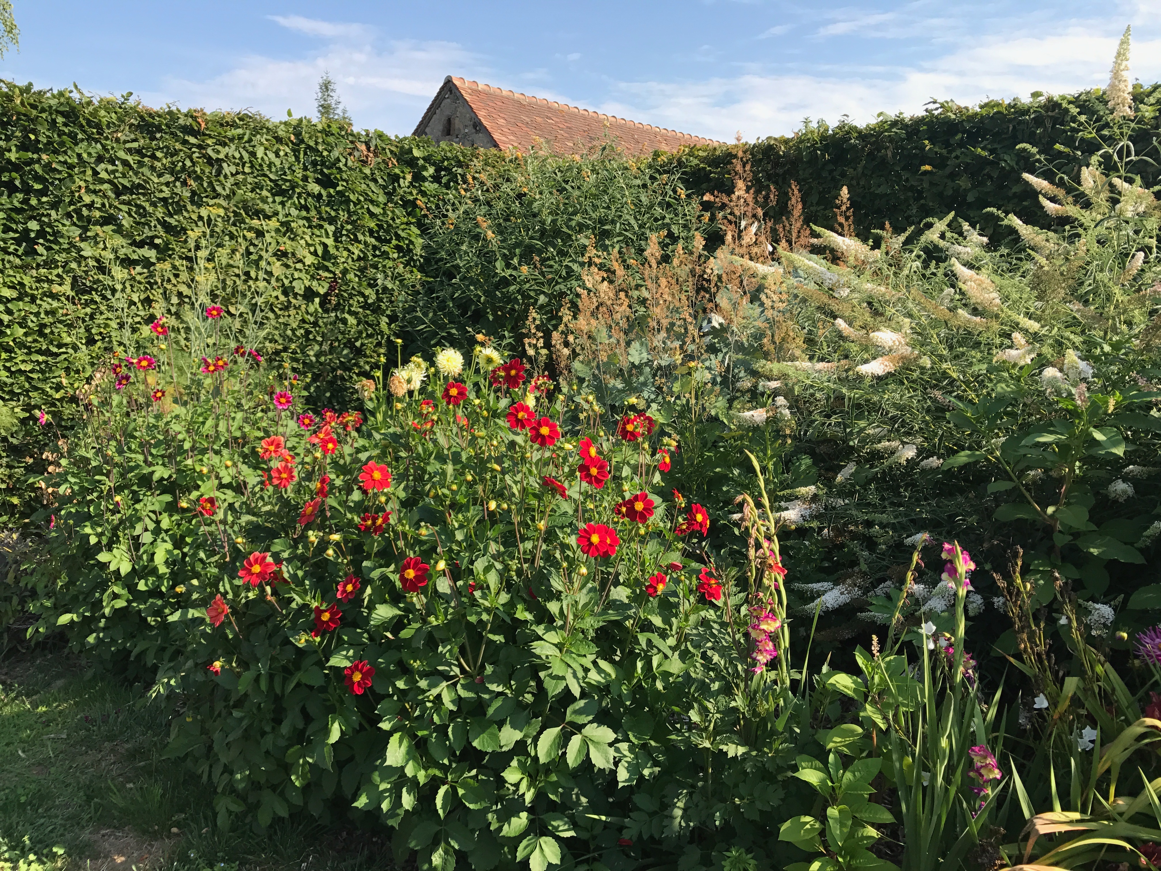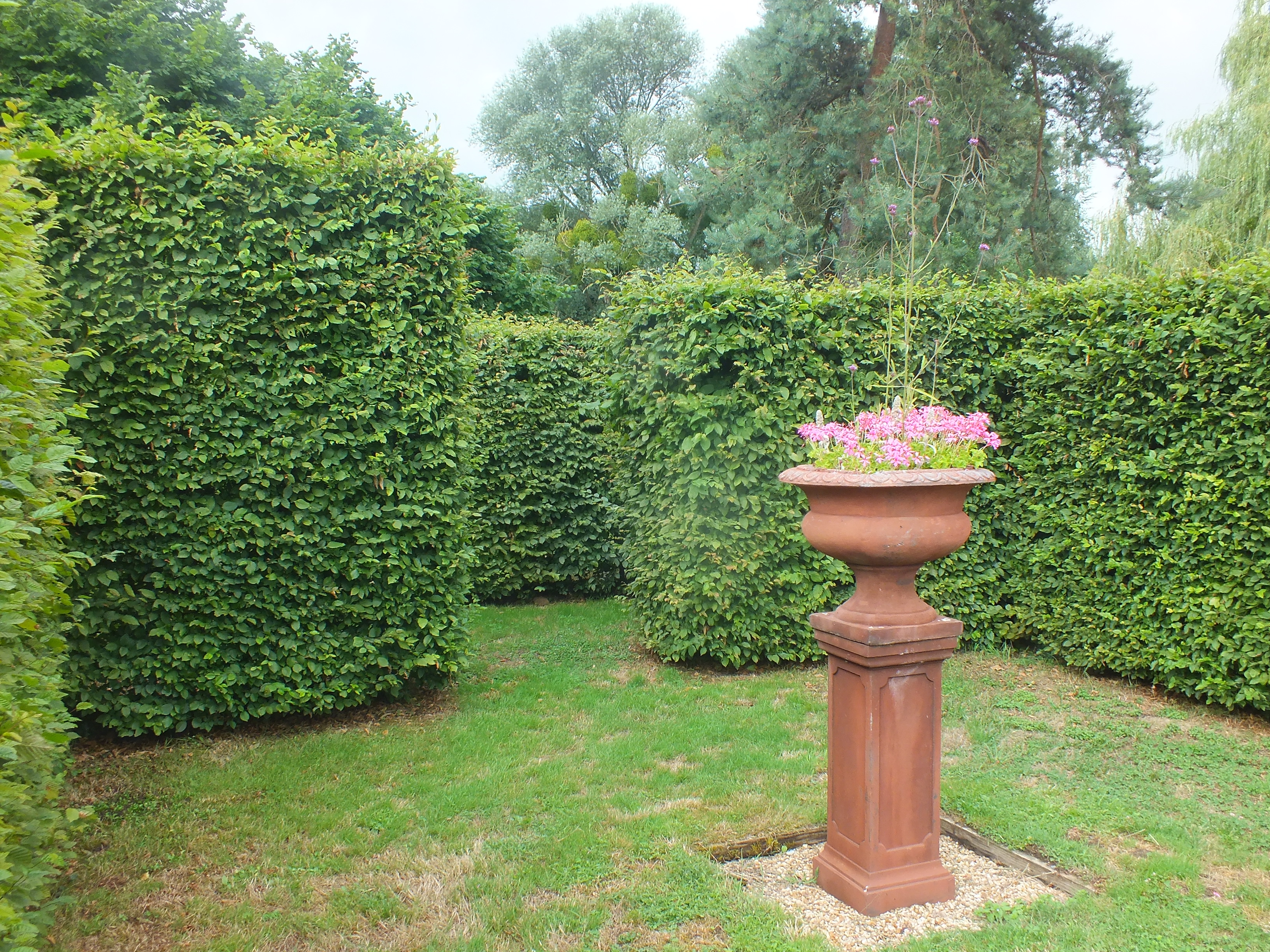 Summer continues…. as do the plants! The hedges require nearly monthly cuts to maintain the crispness and neatness! It takes around five days to cut the tops and sides and tidy up… something to keep Edward busy!