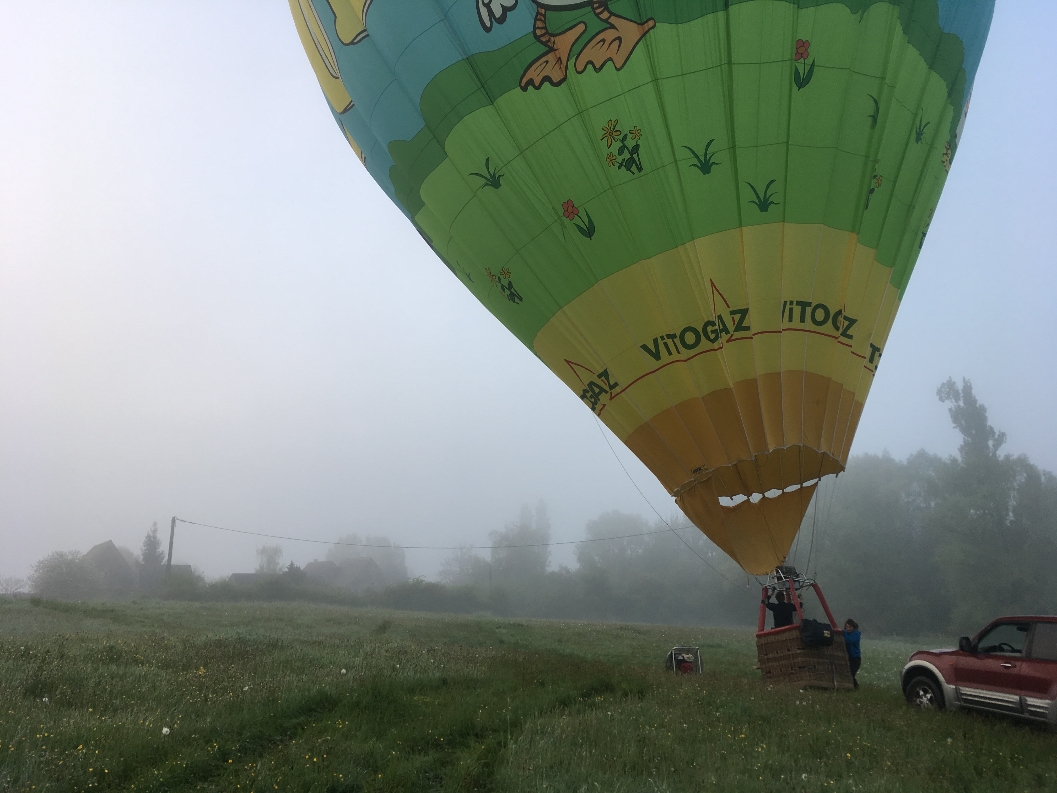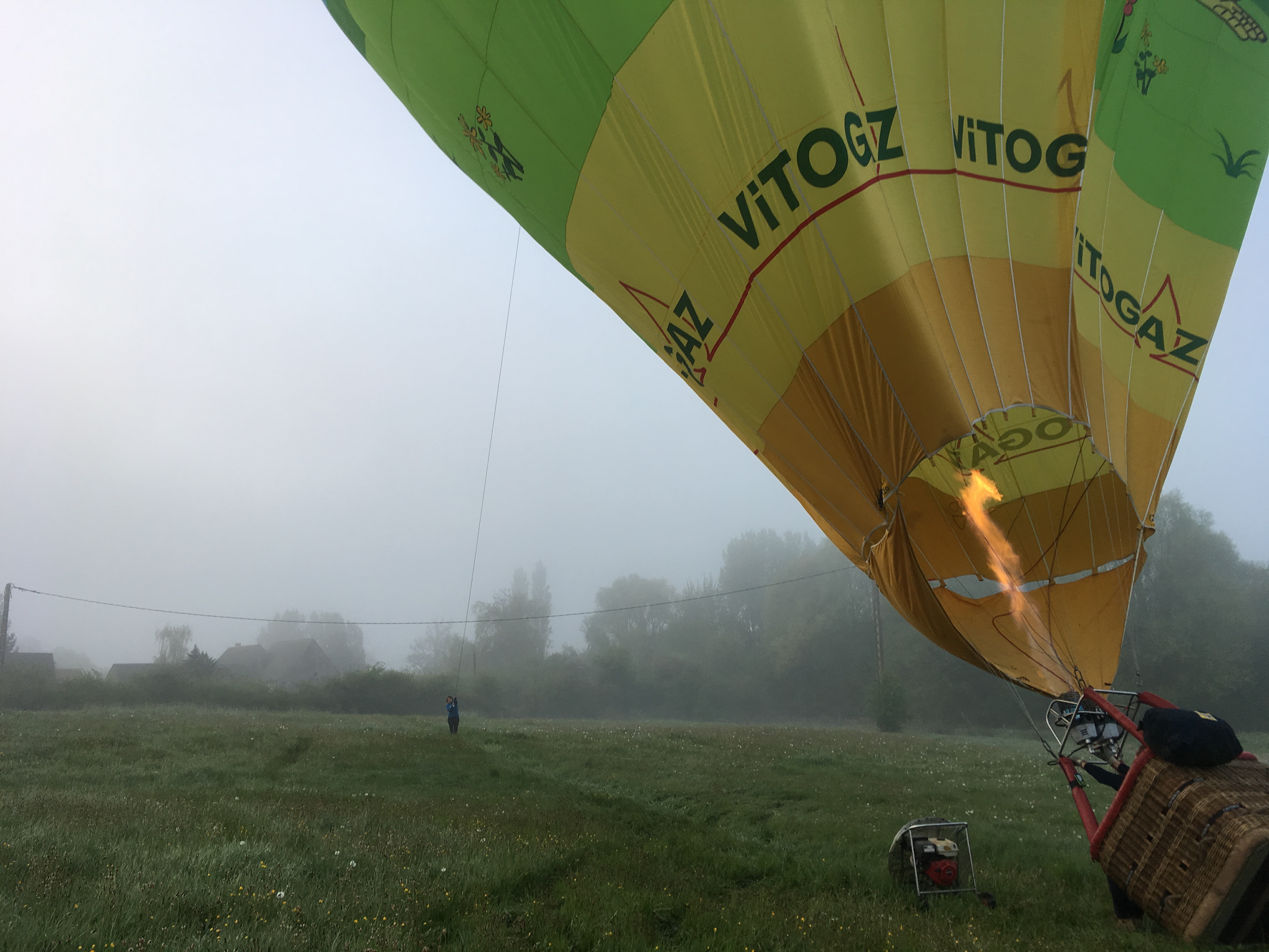 Having been lucky enough to see Bagan from a hot air balloon when we had the chance to do the same from the field across the road we jumped at the opportunity. Anne and Pierre deLaune from Auvers le Hamon sent their son Viktor round and we got the balloon filled and ready to fly! However the weather was against us and the mist came down and the flight had to be cancelled…. another time maybe!