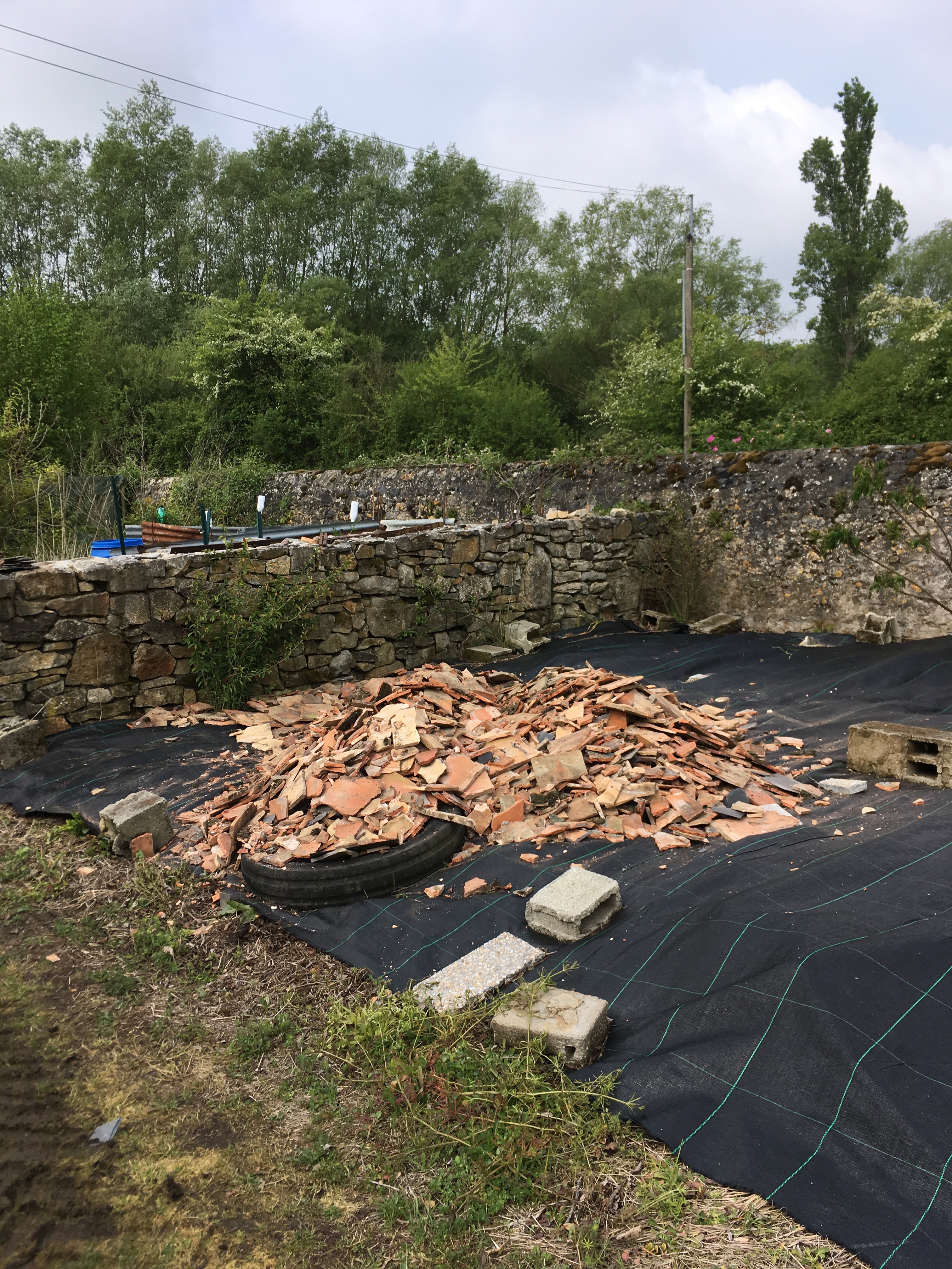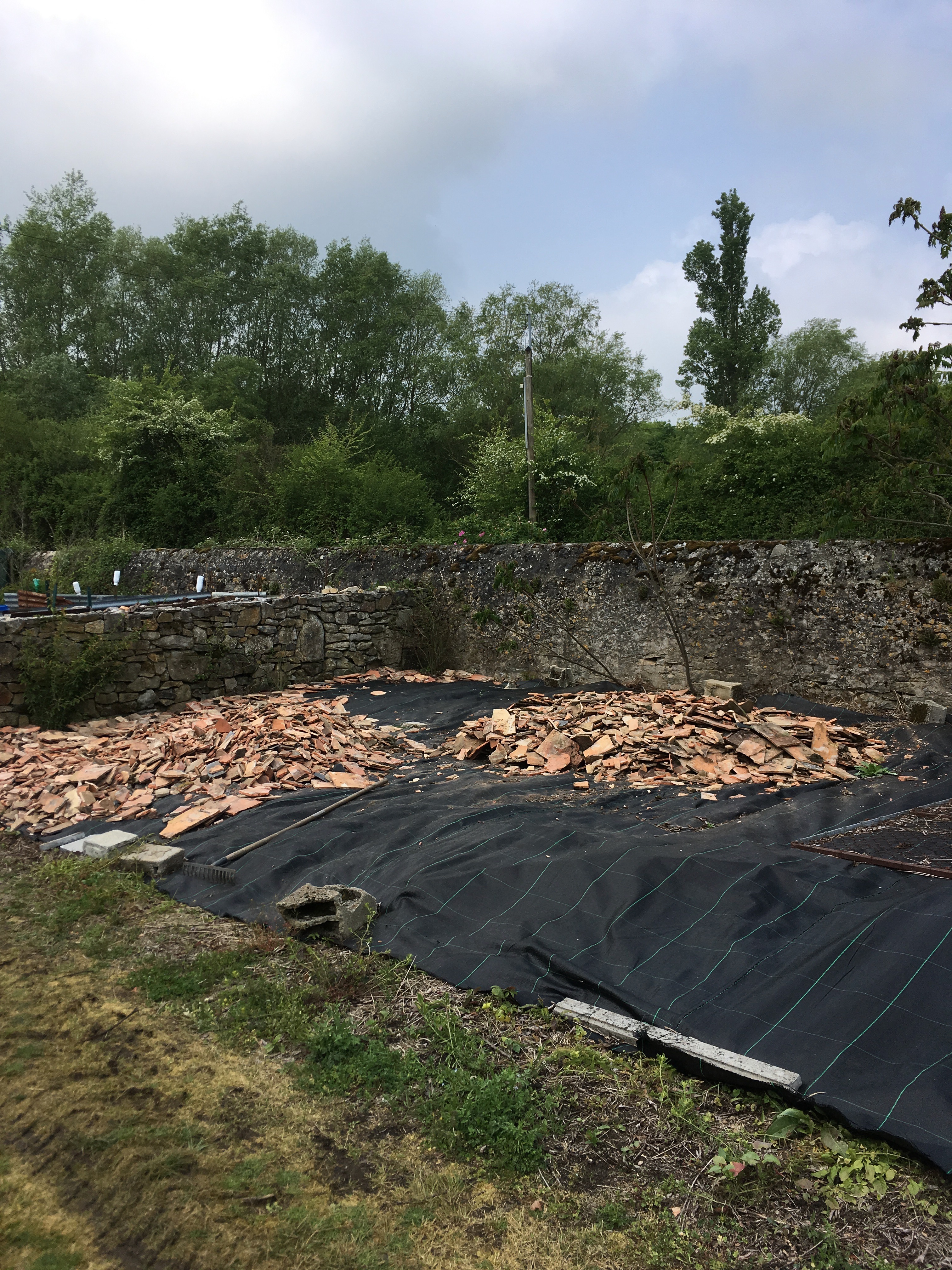 The first opening of the garden for the season meant lots of work and preparation. The neighbour replacing their roof was and opportunity to cover yet more plastic and create another planting area. A royal visitor to keep an ey on visitors to the garden…. it went down well with the French! Requests for selfies came thick and fast!