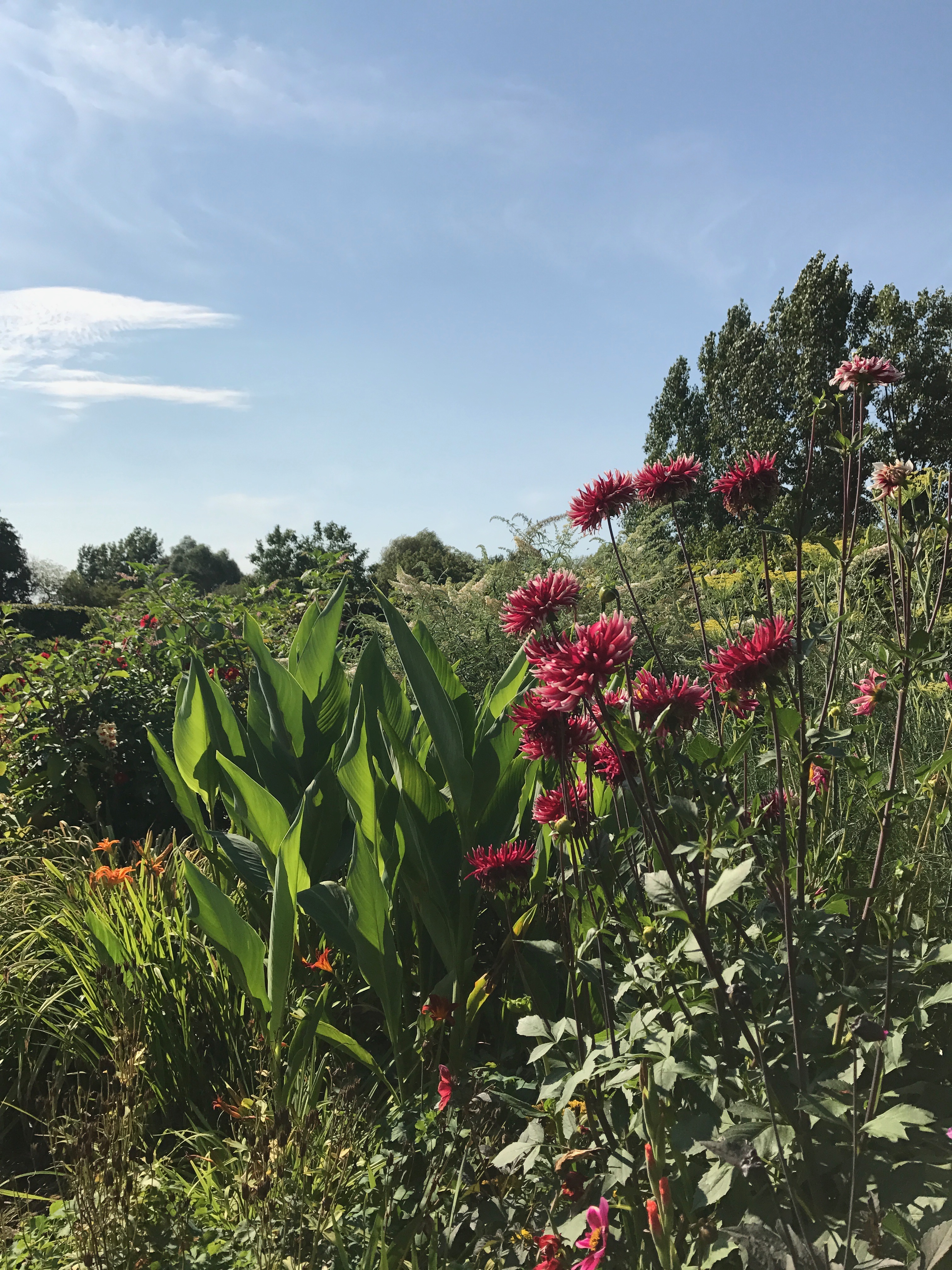 The end of the Summer comes with mixed blessings! The colours continue to entrance and longer shadows create different perspectives. The knowledge that the garden will be getting ready to be put to bed for the Winter allows reflection time for what needs to be changed for the following year. A garden never stops and delights with its very own idiosyncratic nature.
