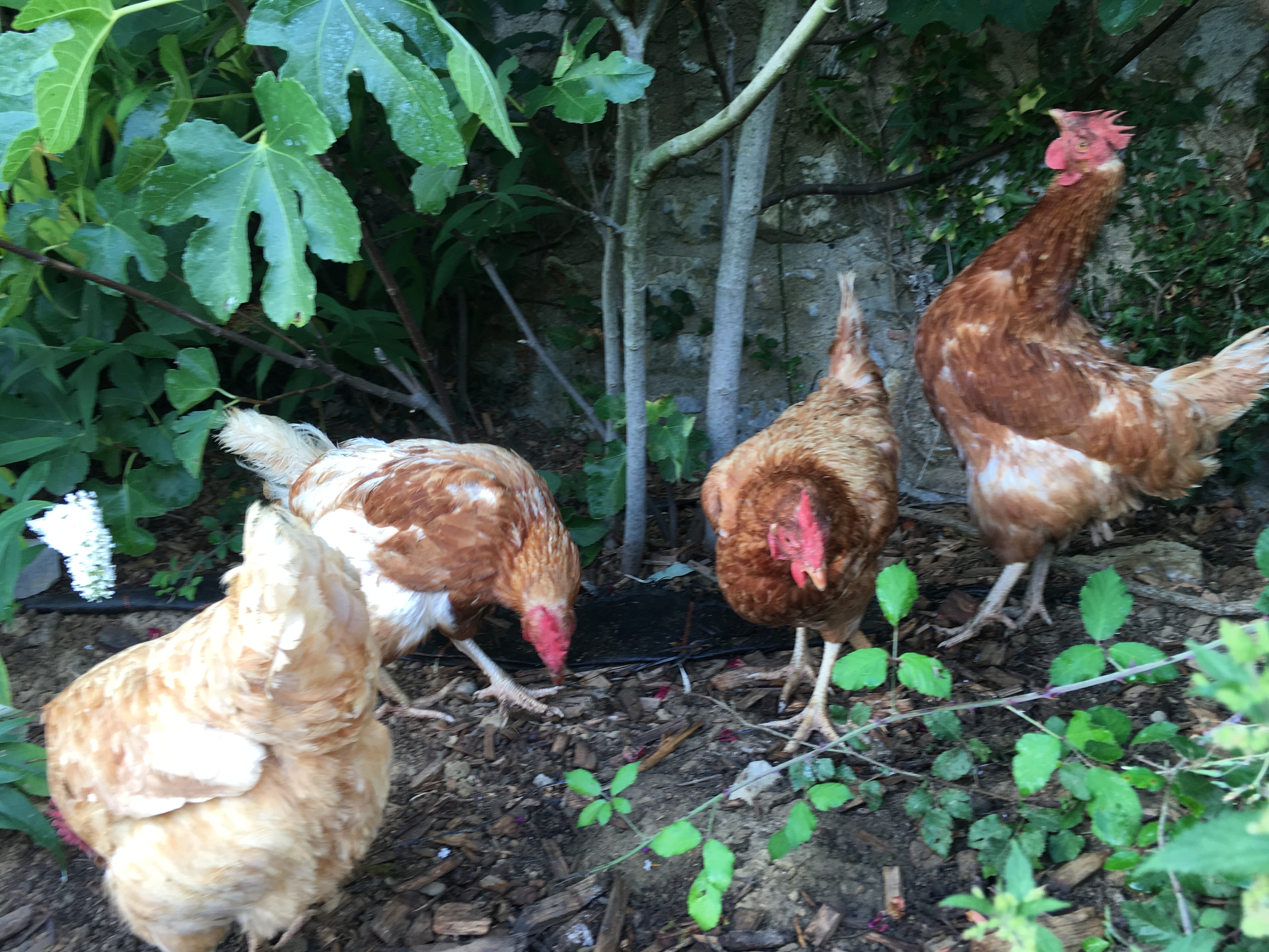 A surprise gift of four chickens was delivered by Josie, Edward’s sister in law…. there would be no shortage of eggs this year! The initial freedom of the garden had to be curtailed after the chickens initially wondered around raking up mulch in their hunt for food! Sharing the sitting room was the final straw and an enclosure was made to keep them in check! Whilst they took a short time to settle in it quickly became clear they needed naming… Dorothy, Blanche, Rose and Sophia! Their new enclosure included a fig tree, which got stripped once the fruit became ripe! At the end of the Summer they were repatriated to the Deux Sevres.